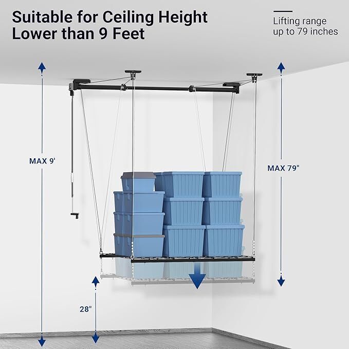 Overhead Garage Storage Rack with Lifting Crank, New in Box