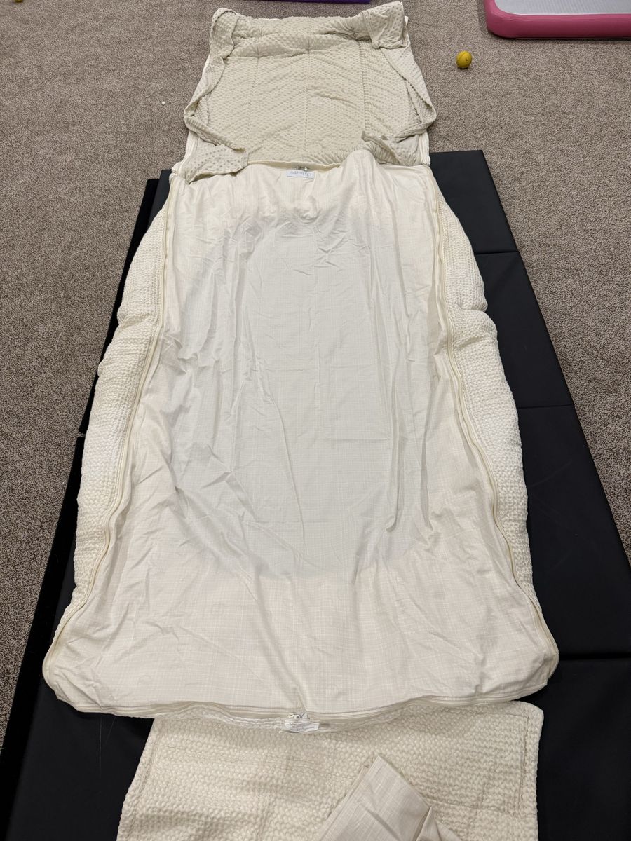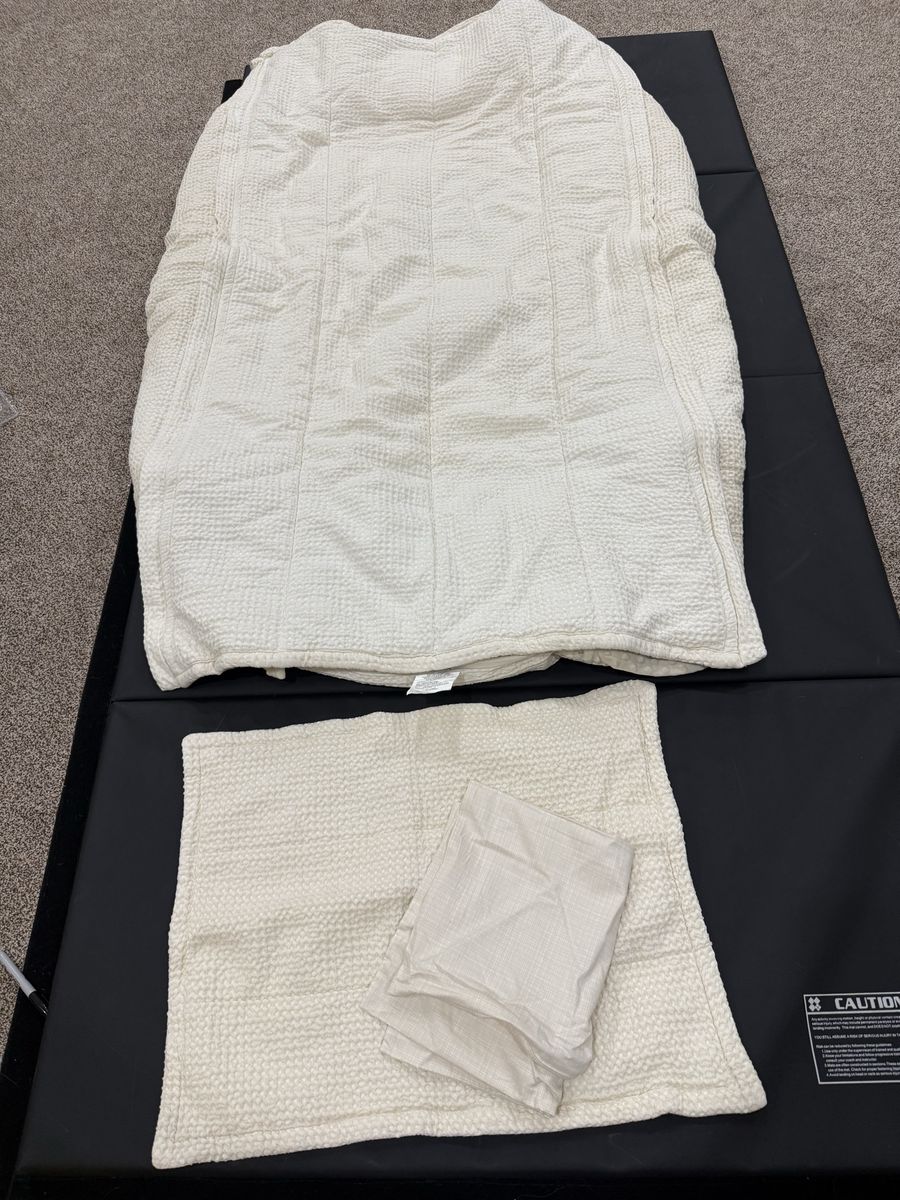 Has a sham and a case and a sheet. Minor off color of fabric. 66MAR