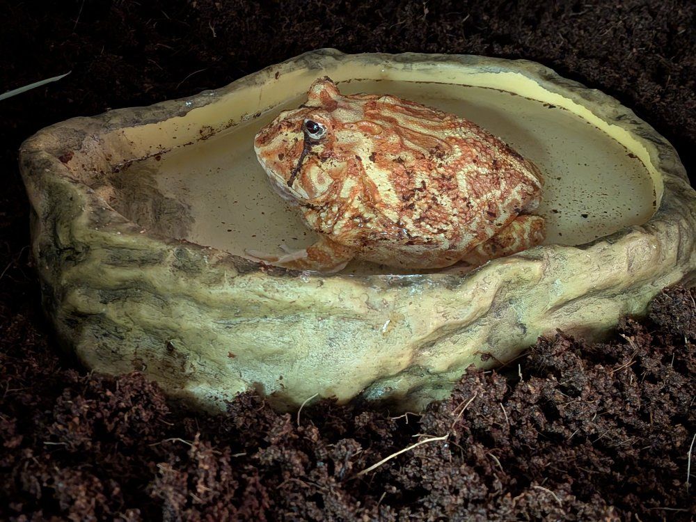 Venmo2 year old male Pac-Man frog. he eats a silverside once a week. very docile.