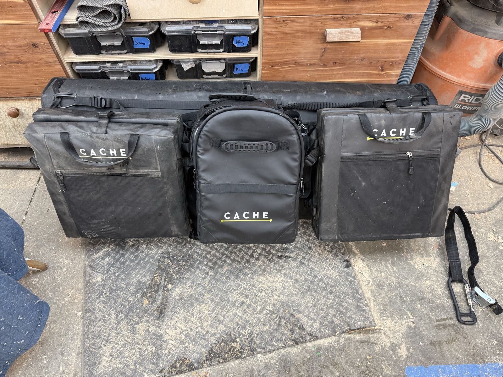 VenmoThe base camp 2.0 is a tail gate mat that features two removable stadium seats and a removable backpack cooler for comfort after the trail. The center panel is removable so you can still use your back up cam. There is a built in strap to keep your bikes secure. Normally this has a lock for security, but I removed it because the buckle on the inside was getting in the way of storage bins. I do still have the lock and the rivet plates if you want to reinstall it for safety. A great tail gate pad all around.
