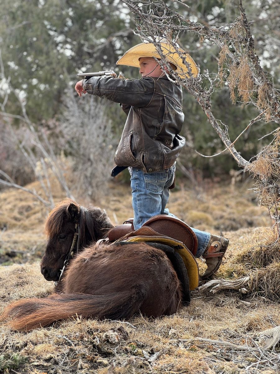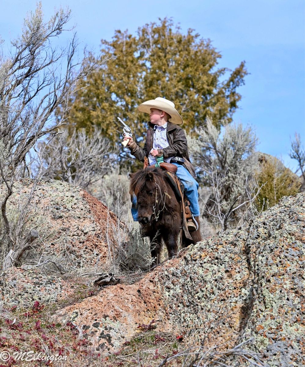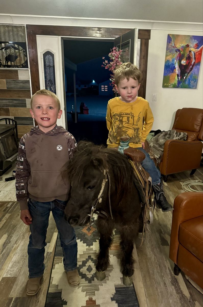 Pickles is the kind of pony everyone hopes to find but rarely does. This 7-year-old brown gelding is the definition of a true children’s pony—safe, seasoned, and exceptionally versatile. Pickles has been thoughtfully used and exposed to just about everything a family could want. He has been ridden out on the trails, is completely comfortable around obstacles, and will quietly go over, around, and through whatever is asked of him. He is trained to lay down and has been desensitized to gunfire, handling it with confidence and composure. In addition to riding, Pickles is broke to drive and has been driven through neighborhoods, down the road, and even on trips to Grandma’s house. He is gentle and kind-minded, making him suitable for even the littlest handlers—he has been led, groomed, loved, and ridden by young children with ease. And if your little cowboy thinks he’s the next John Wayne, Pickles is the mount he’s been dreaming of. These boys have ridden him all over the mountain—chasing outlaws, shooting the bad guys, and saving the day—building confidence, imagination, and a whole lot of memories along the way. He’s also the kind that makes kids feel like entrepreneurs. Our 8-year-old took Pickles to the horse expo and proudly led him through the booths giving pony rides—charging a dollar a ride. He came home with a fistful of cash and the biggest grin you’ve ever seen. At one point, a kind lady even tipped him $5 just to let Pickles take a break for 15 minutes. That’s the kind of pony he is—safe, steady, and loved wherever he goes. What truly sets Pickles apart is his demeanor. He is patient, forgiving, and kind, giving young riders the confidence they need while still being fun and capable enough to grow with them. Whether it’s a first pony, a step-up mount, or a dependable family pony that can do a little bit of everything, Pickles checks every box. If you’re searching for that hard-to-find, all-around children’s pony with the mind, training, and experience to match—Pickles is your guy.