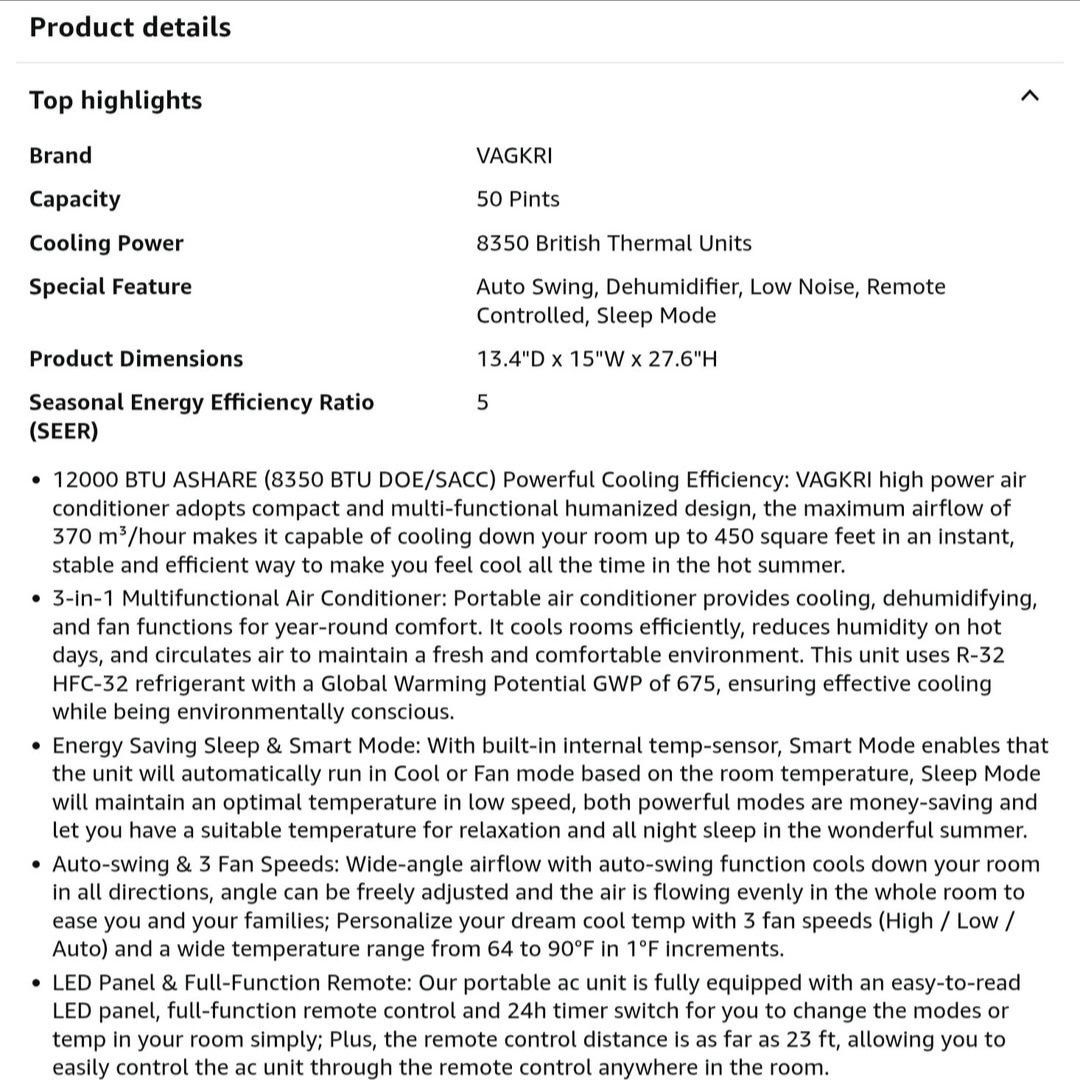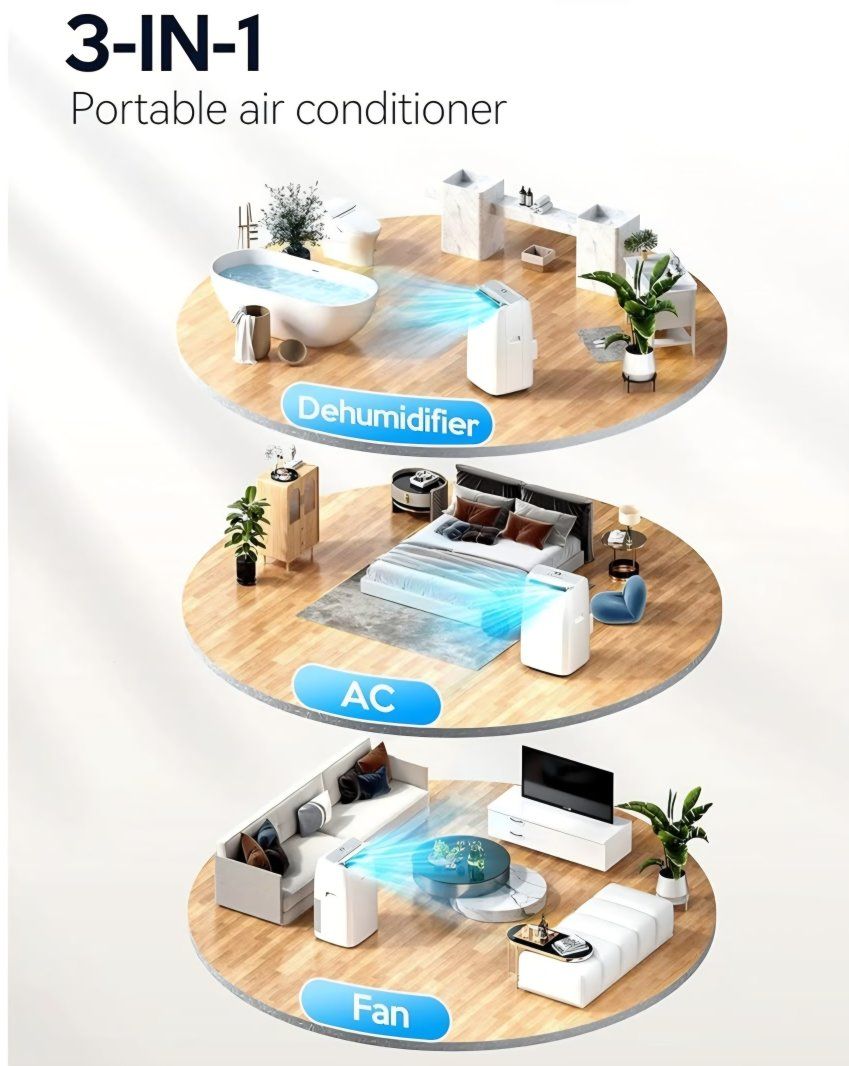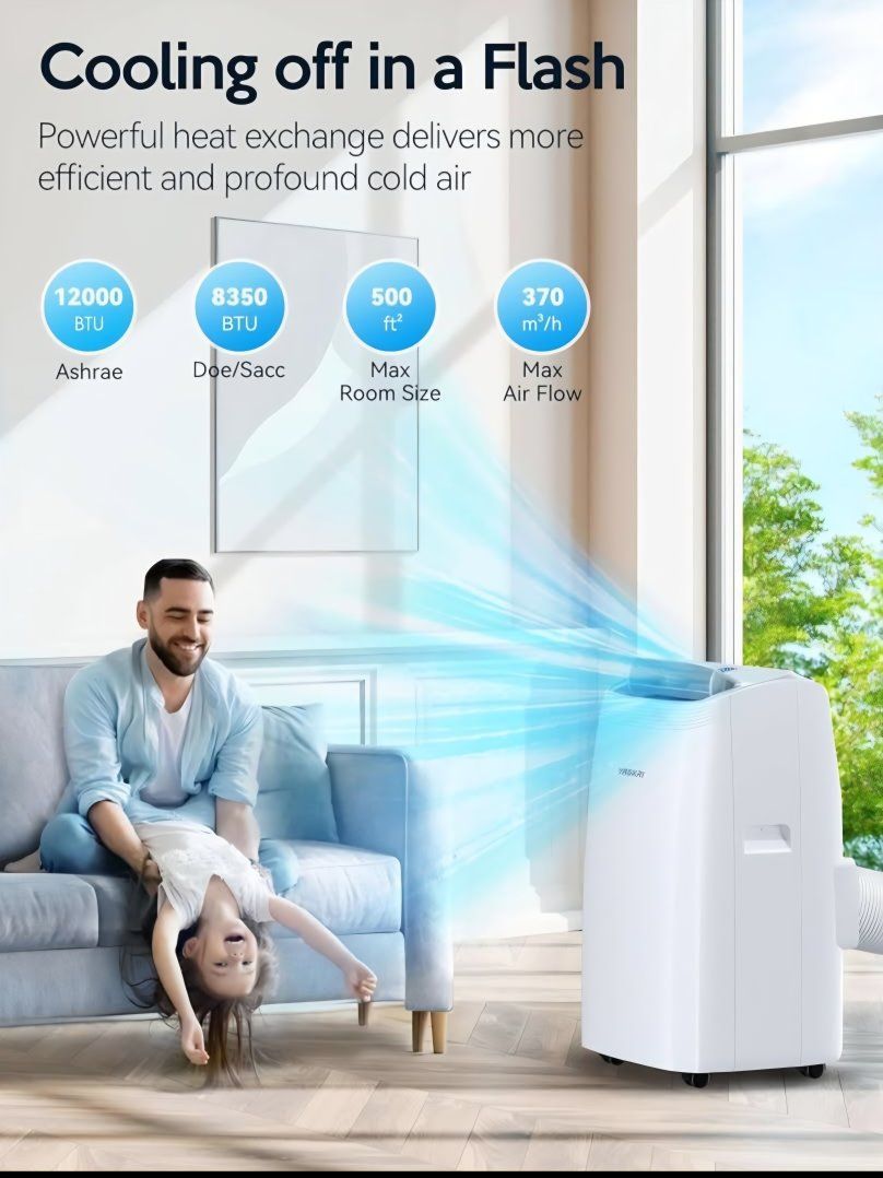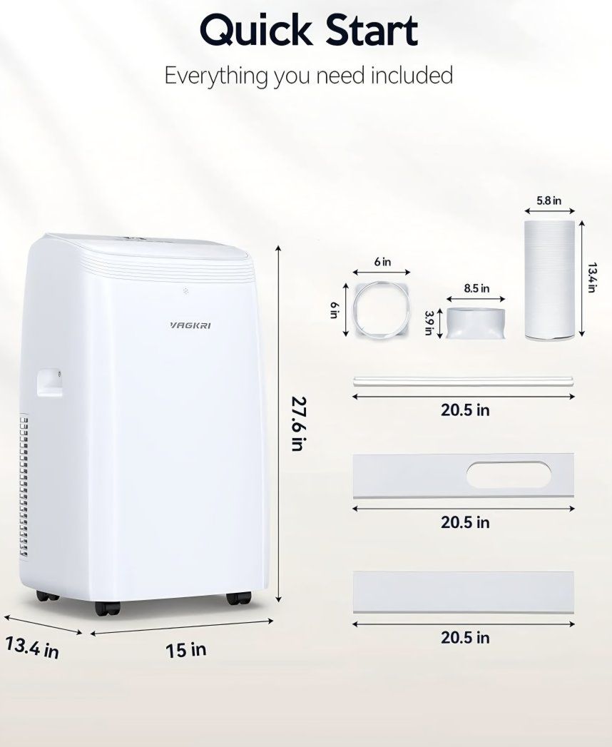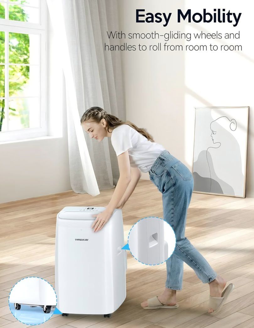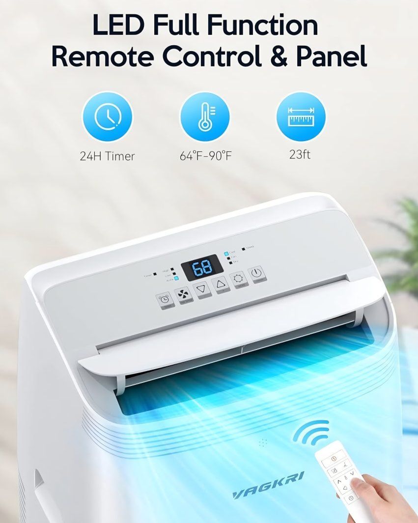 VAGKRI 12,000 BTU Portable Air Conditioner, 3-in-1 AC with Fan & Dehumidifier, Cools up to 450 Sq.Ft, Energy Efficient AC Unit with Remote Control, Sleep Modes, 24H Timer for Bedroom, Room, Office