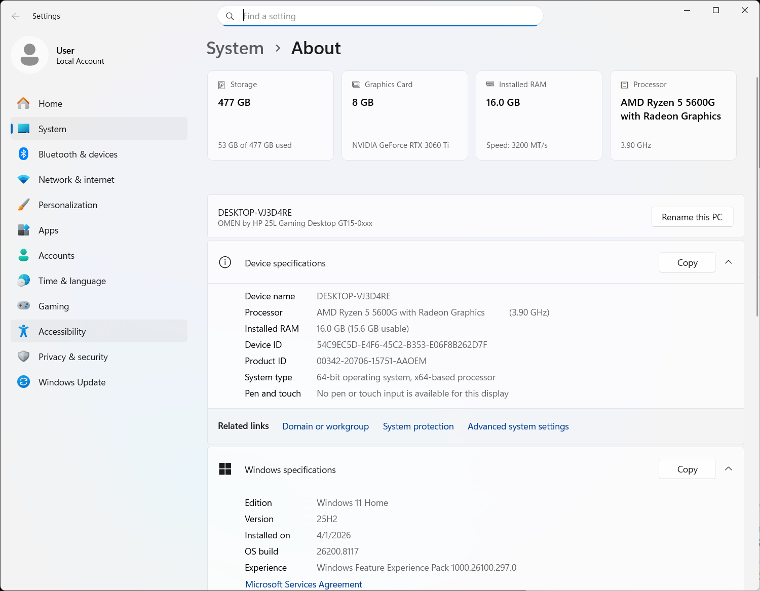 -AMD Ryzen 5-5600G [6 Cores, 12 Threads] -NVIDIA GeForce RTX 3060 Ti -16GB 3200MT/s DDR4 RAM -500GB M.2 NVMe PCIe 4.0 SSD -WiFi + Bluetooth -Futureproof & Upgradable -Activated Windows 11 -Professionally Built and Tested -3-Day Return Warranty