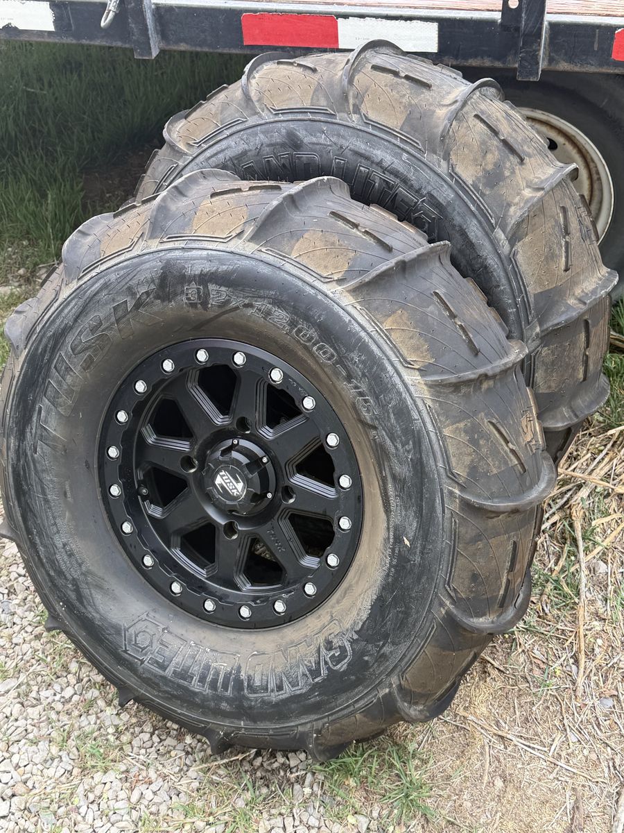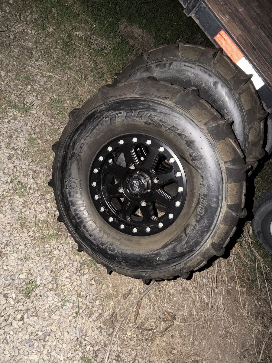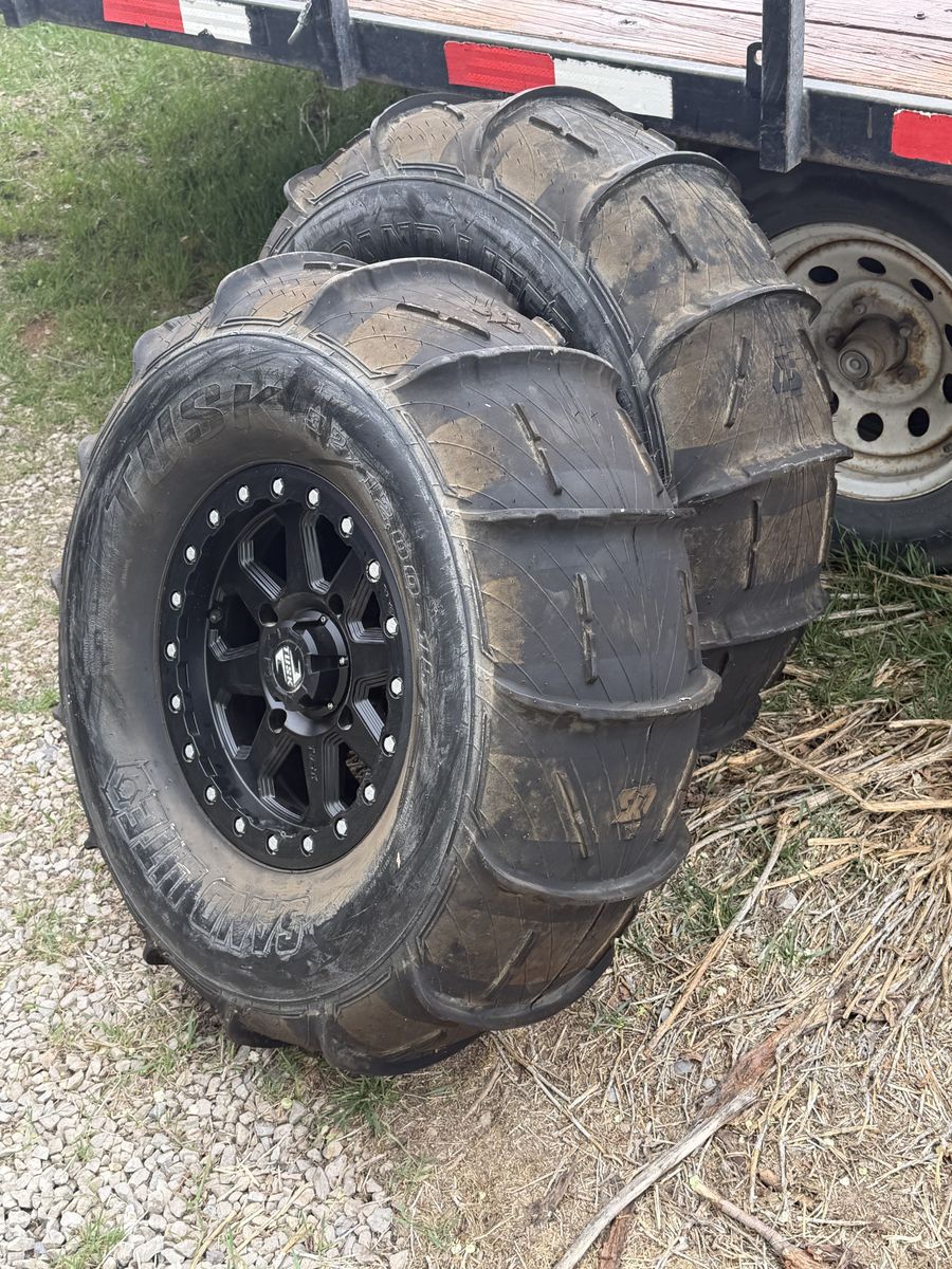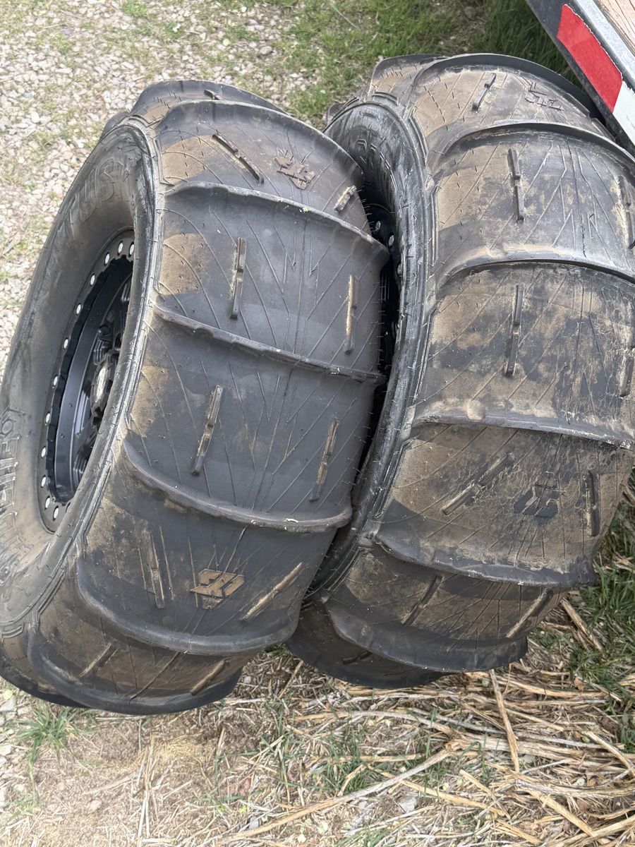 ApplePay32in paddle tires Came off my turbo 4 seater. Used once. Real bead lock wheels Great shape 650$