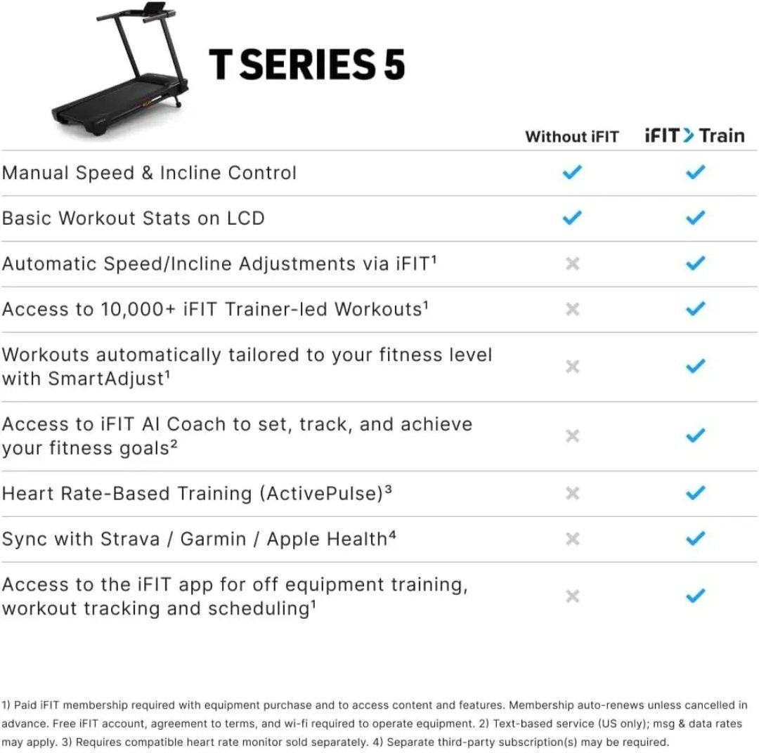 Treadmill NordicTrack T Series 5, Black, 68.3"D x 30.5"W x 48.7"H, Metal