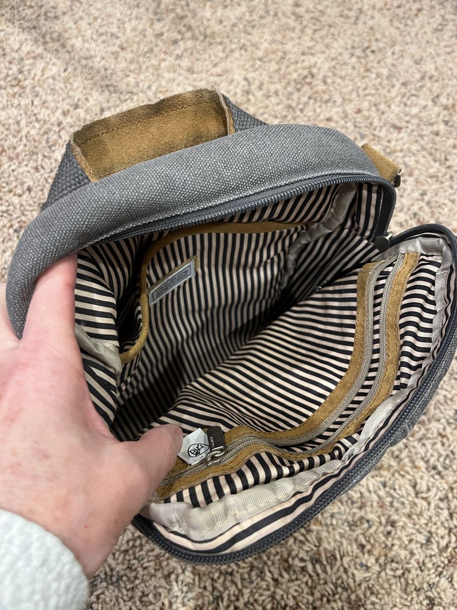 VenmoGreat travel bag with lots of pockets both inside and outside. Expanding side pockets for water bottles. Removable shoulder strap. Can lock the outside zippers with a small lock (not included). Tiny flashlight attached inside.