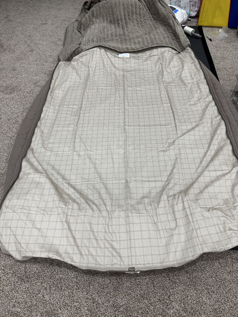 Includes 2 shams and 2 cases and 2 sheets. 1 sheet has some stains, hole at bottom. Has some signs of pet hair needs to be lint rolled/washed. Mar68