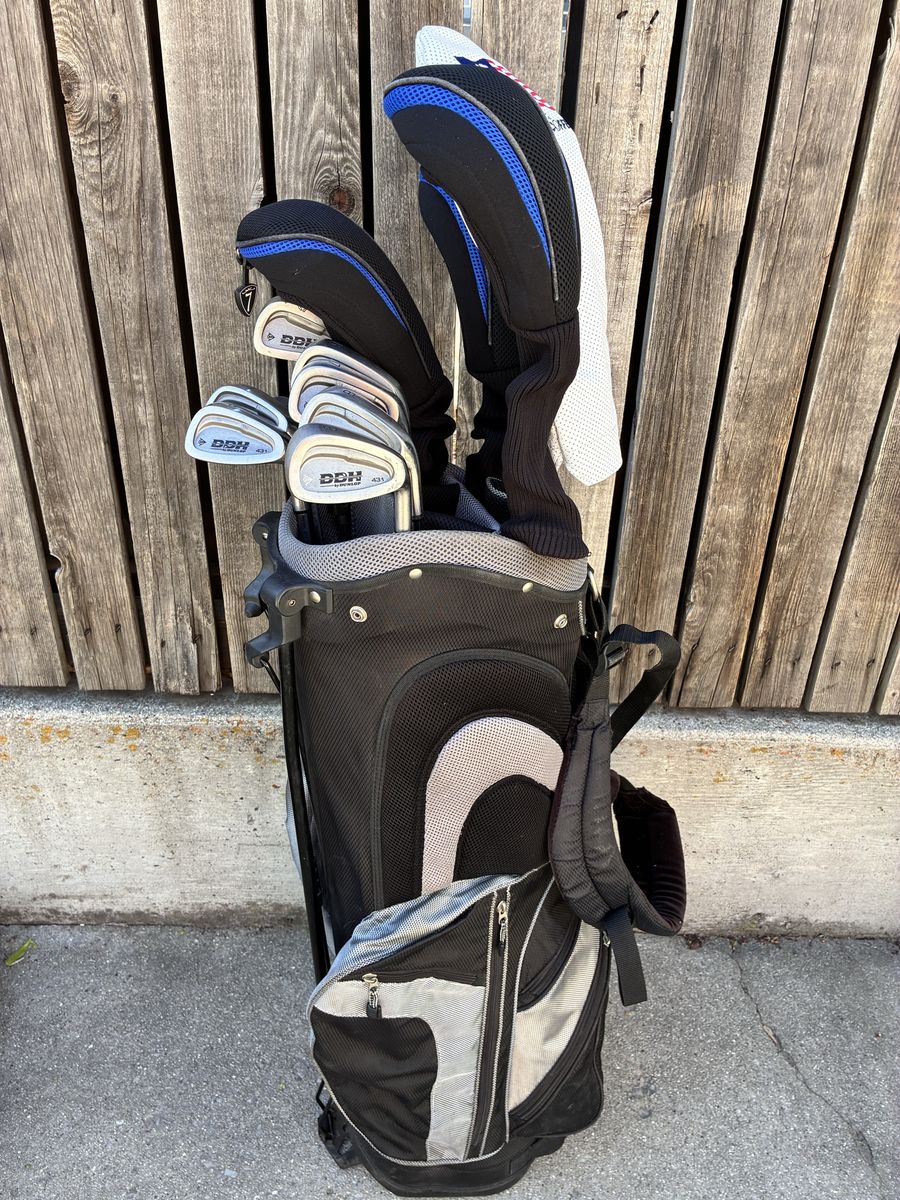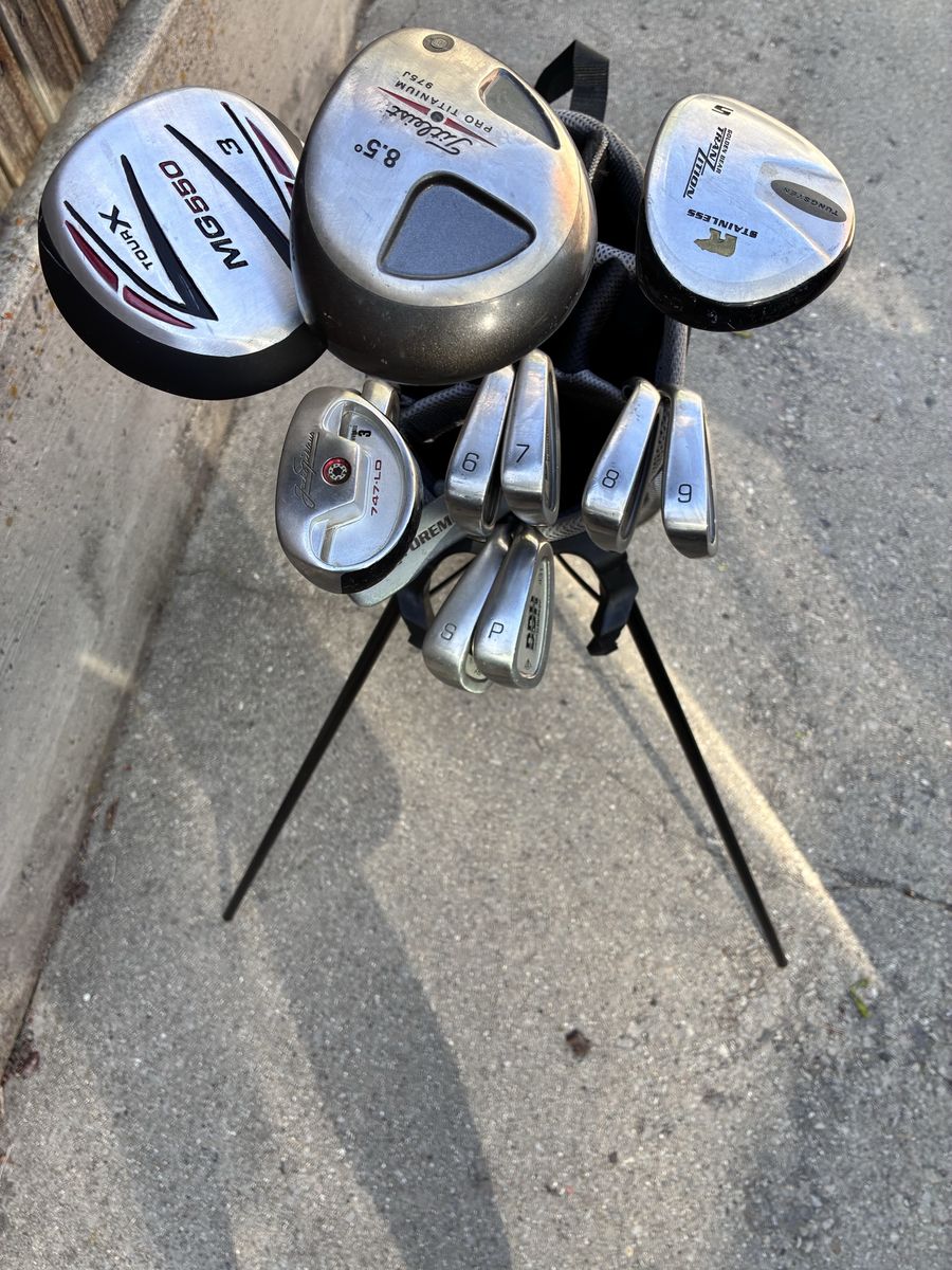 VenmoStill available-Nice starter to intermediate set of men's standard length golf clubs for sale. Set includes Titleist driver, Tour X 3 wood, Nicklaus 5 wood and 3 hybri,d, Dunlop (Titleist style) stainless steel cavity back irons 5-sw, a blade putter, nice lightly used stand carry golf bag, golf balls, tees, ball markers etc. Set is ready to take to the range or course near you. Message or text Lorin 801-386-0027 if interested.