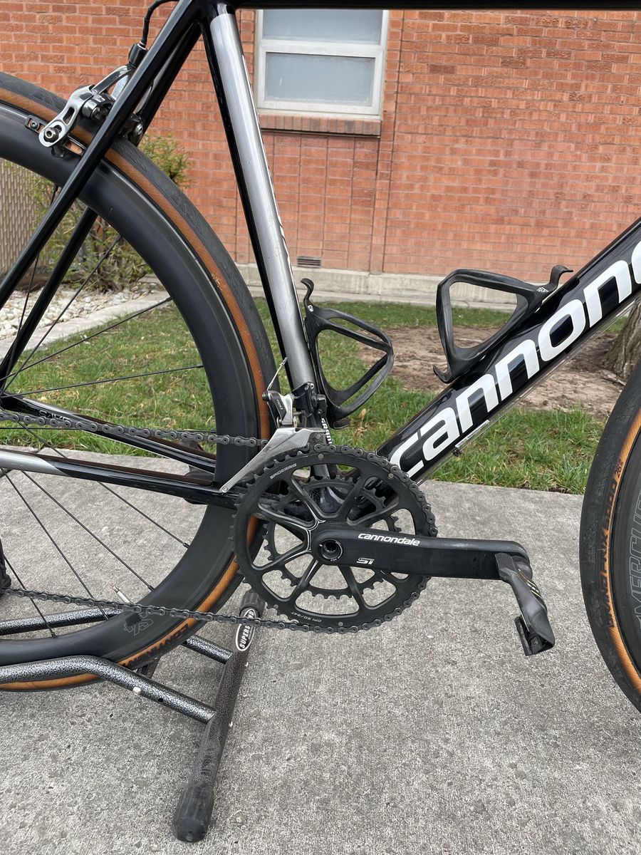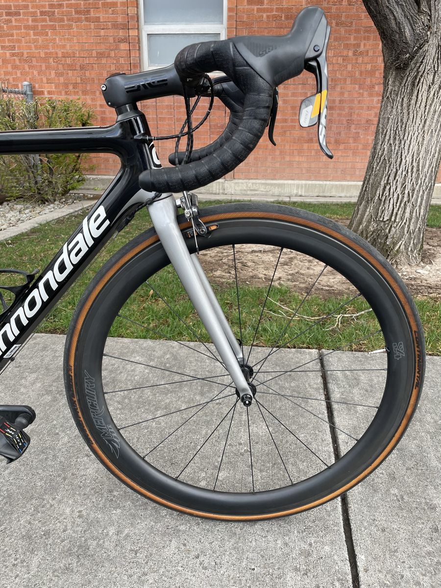 -Frame: Cannondale supersix evo size 52 -Wheels: Mercury S4 Carbon wheels -Tires: Continental Grand Prix 28mm -Drivetrain: SRAM Red Mechanical 11speed with red derailleurs, shifters, cassette and dura ace chain. Has Cannondale SI cranks. -Stages power meter on non-drive side crank arm. -Enve carbon bar and stem combo with lizard skins DSP grip tape. -Cannondale Carbon seatpost with specialized power saddle.
