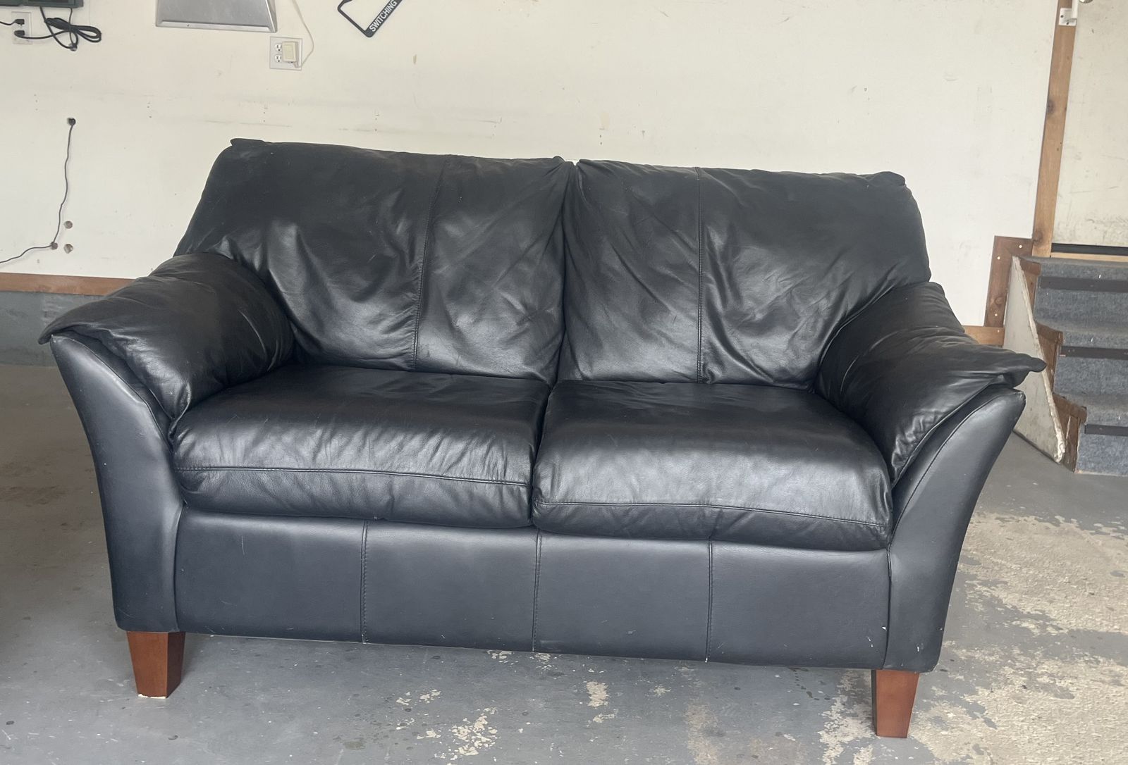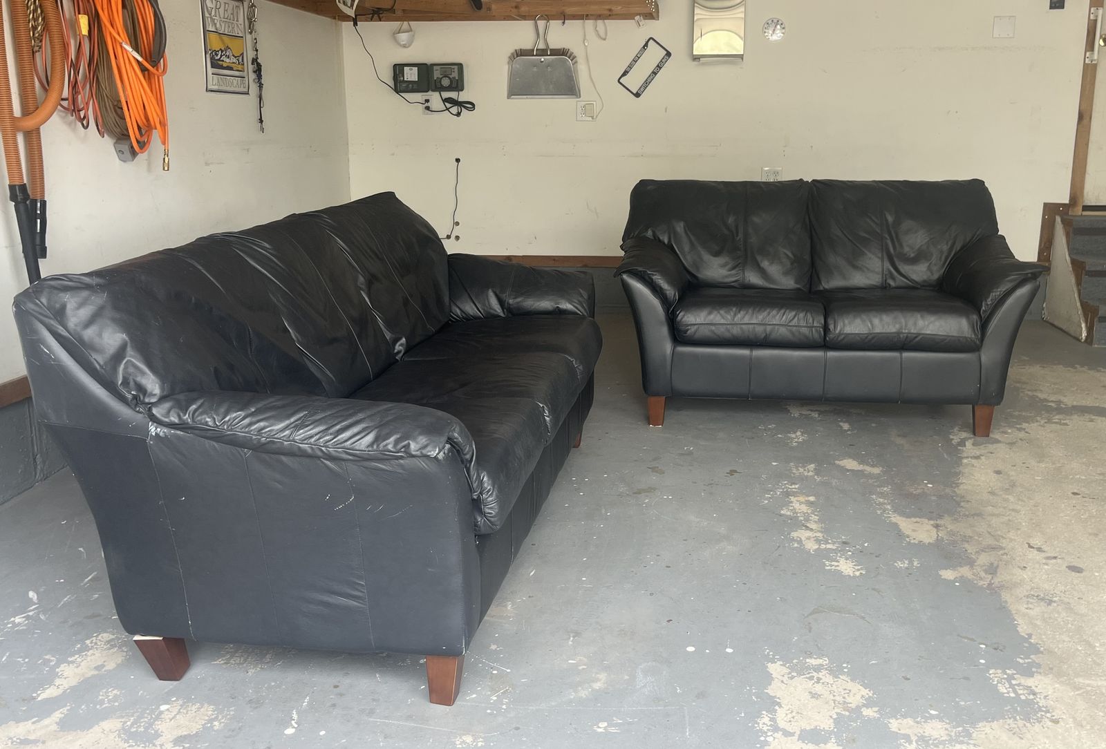 ZelleBlack leather sofa and loveseat for sale. Great condition, used for staging! Must purchase both: total price $ 125.00