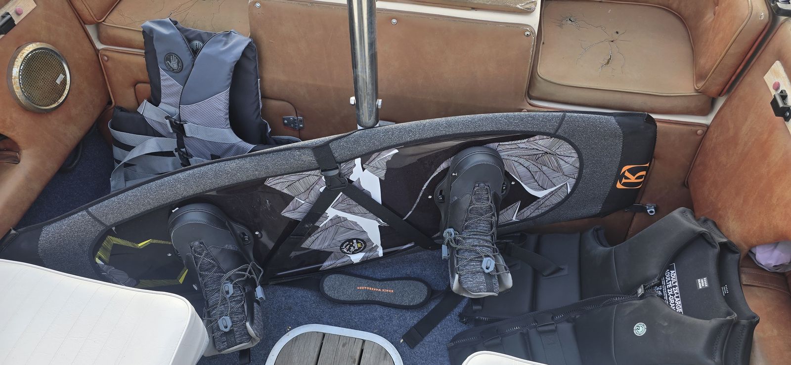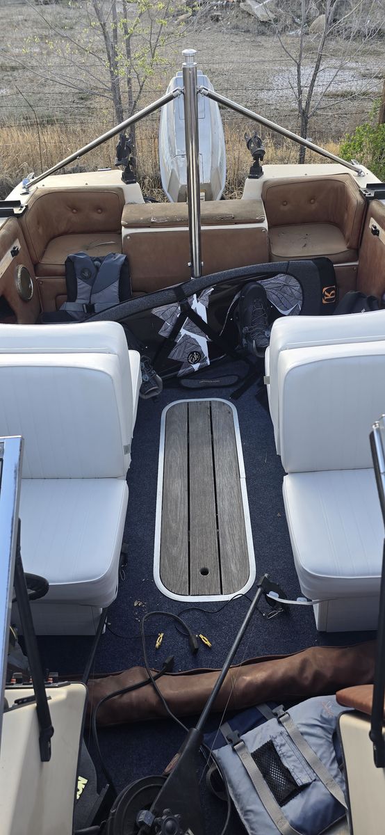 New Floor, Live Well, Captain Seats, Down Riggers, Fish Finder, Removable Tower for wake boarding and tubing, Wake Board, Life Jackets, New tires on trailer, 10 miles put on the tires. Trailer could use a new paint job, Trailer lights are wired just needs a plug. Fun boat that wont break you check book to own. seats 7 comfortabley.