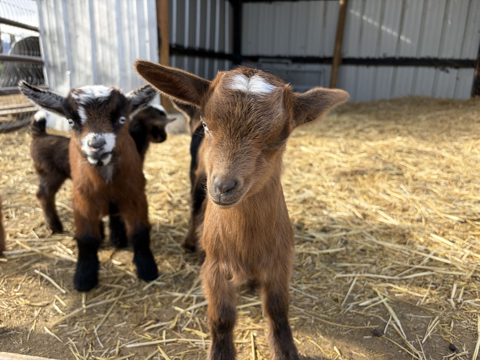 Blue eyed baby goat! Mom is red, dad is black and registered. Born as a triplet. Take now to bottle feed or pay a deposit to take when registered.