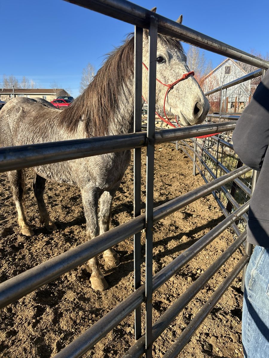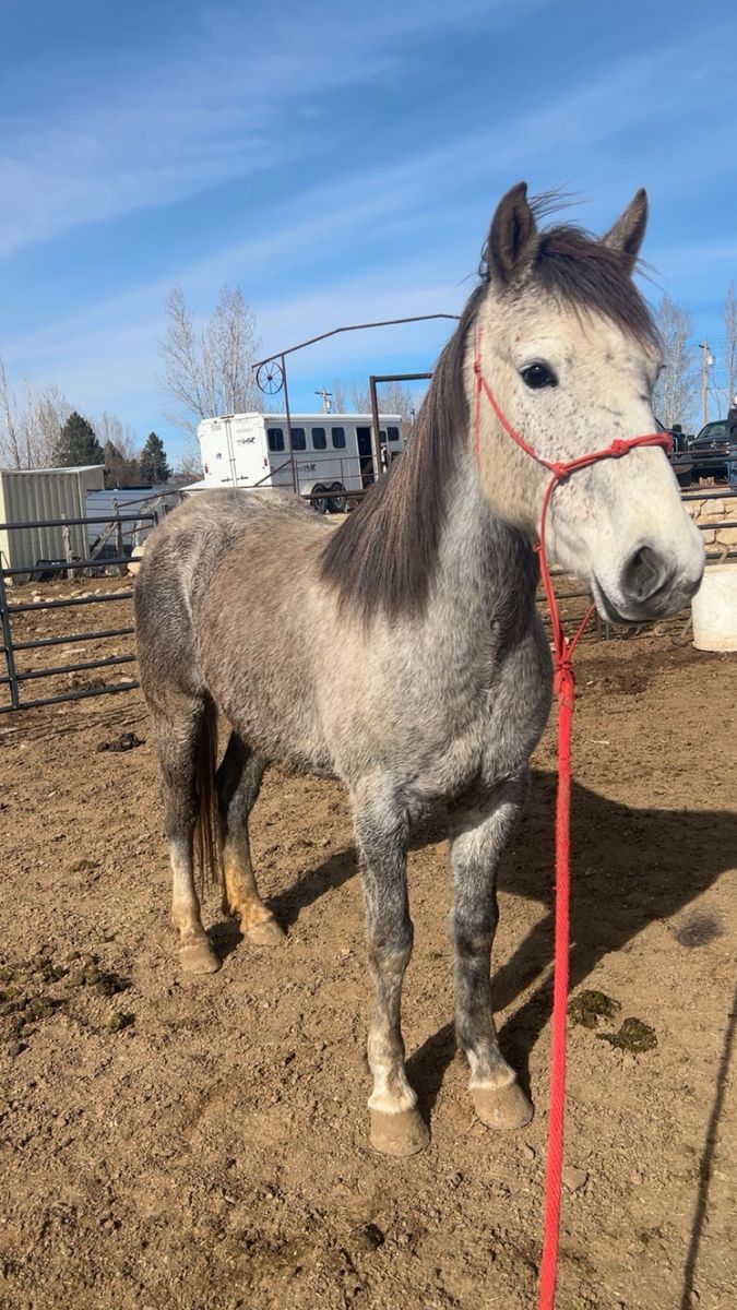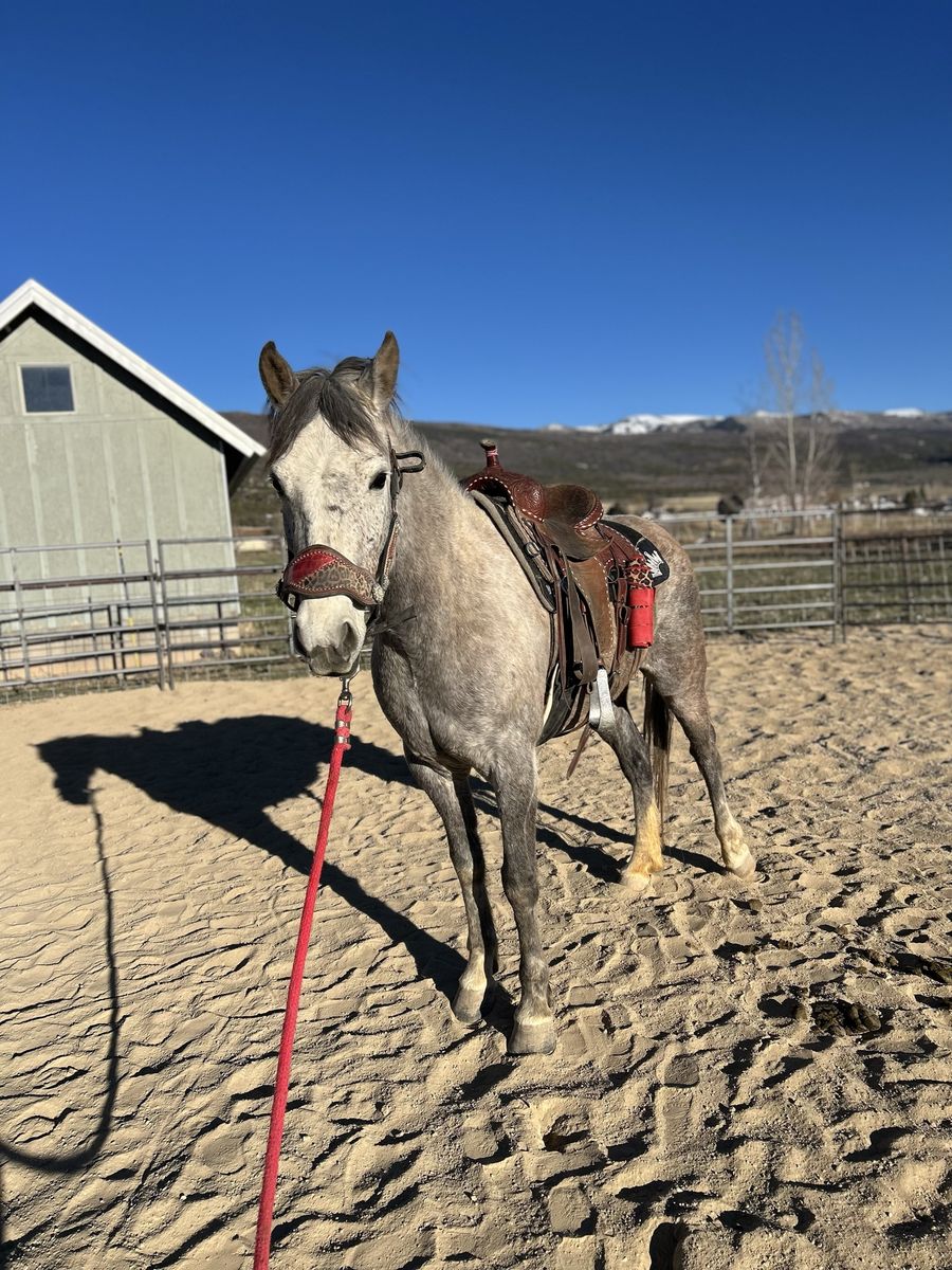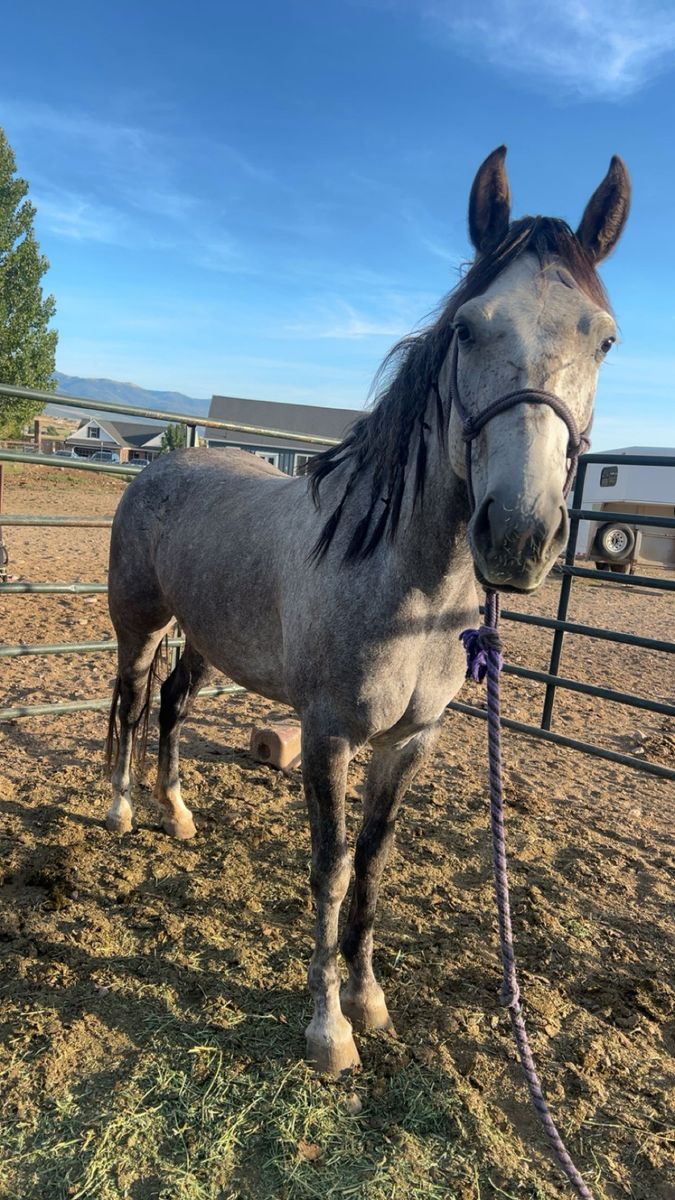 She’s a 4 year old she’s been worked under the saddle a few times picking up her front feet she’s halter broke and lunges really nicely she stands tied I bought her untouched and now she’s a whole different horse with the little time I have had with her she wants to learn and needs a job I think she would go good in any direction I am selling her as a quarter horse due to what I was told by her old owner she’s very smart and easy to be around have to let her go because I don’t have time for her. You can text me with any questions you have about her and I can answer them at 435-851-7375