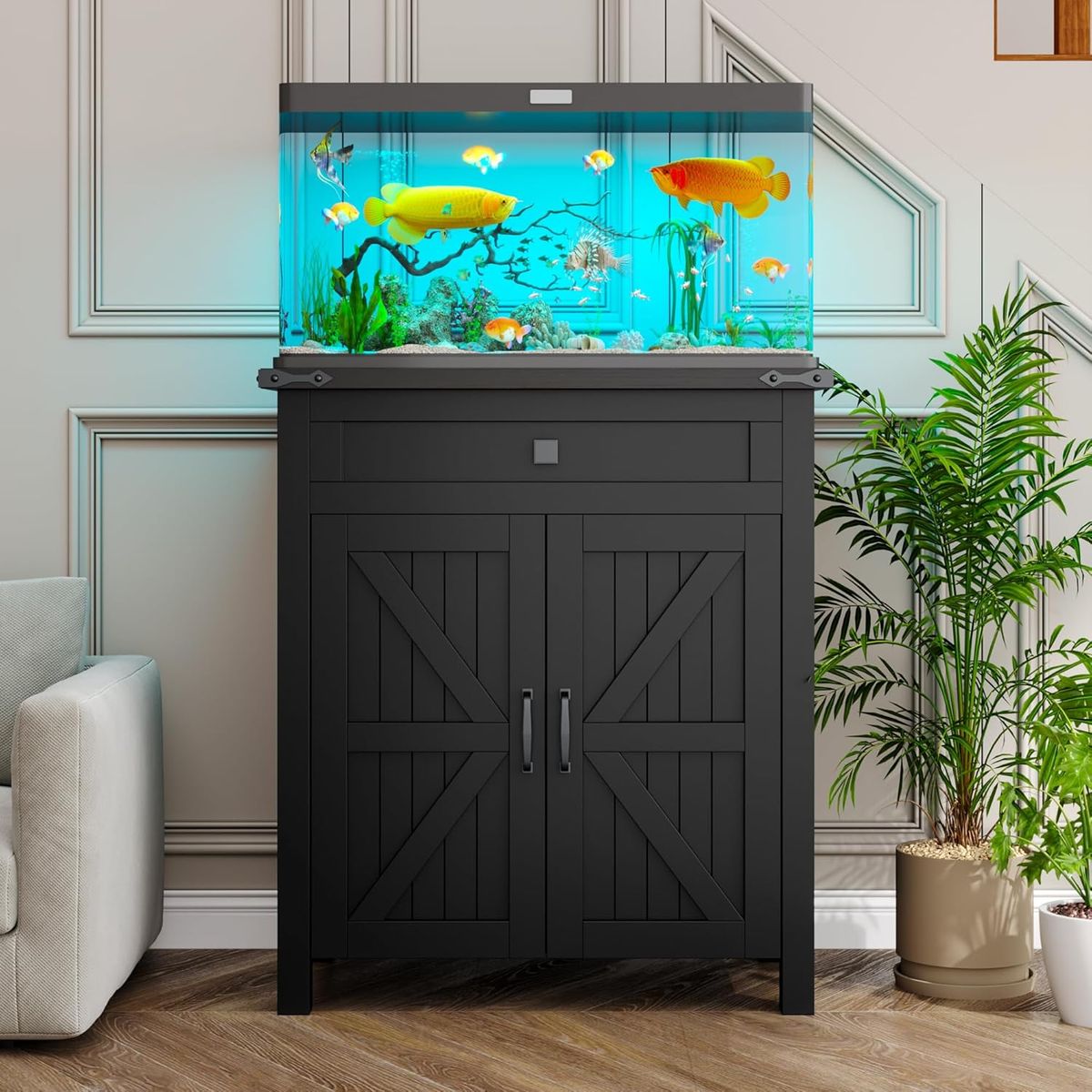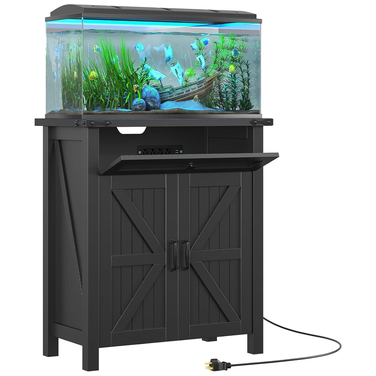Retailer's Title: 20 Gallon Fish Tank Stand with Power Outlets and Drawer, Farmhouse Aquarium Stand, Reptile, Turtle Tank Stand with Cabinet Storage (Black, 20GL)