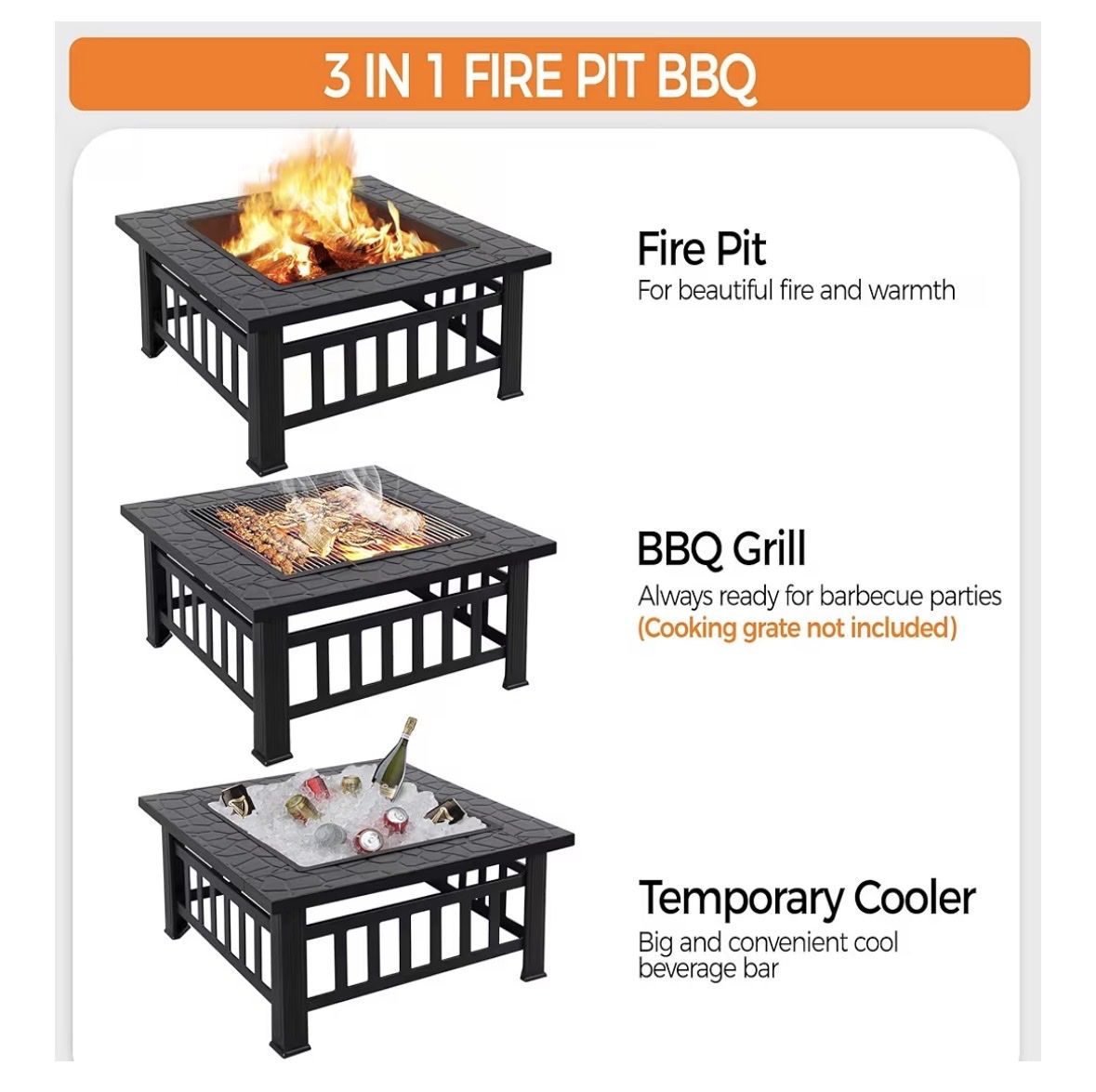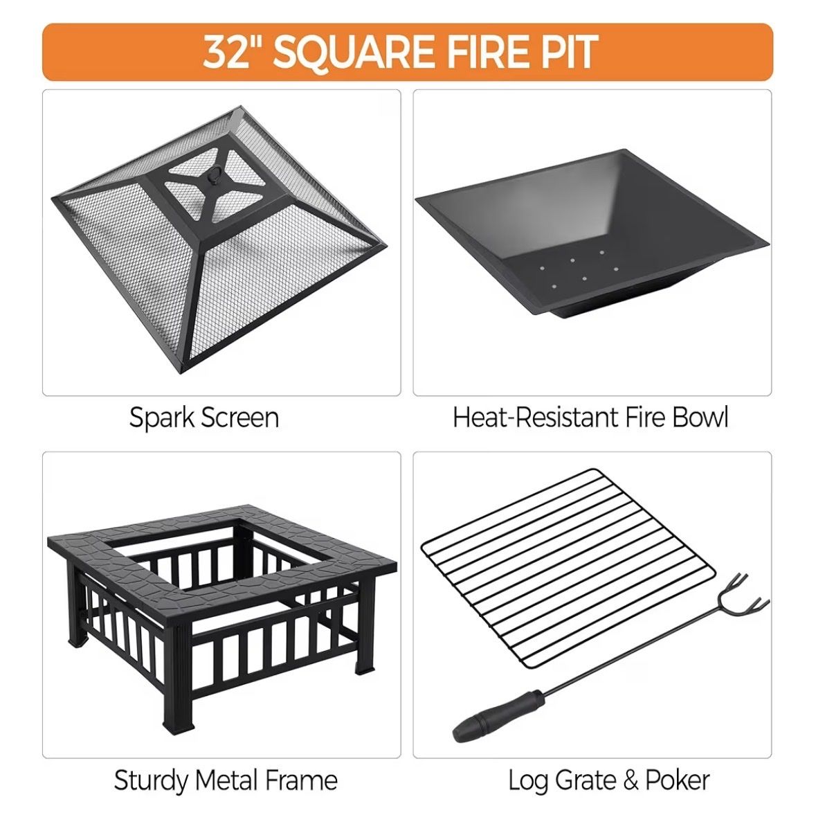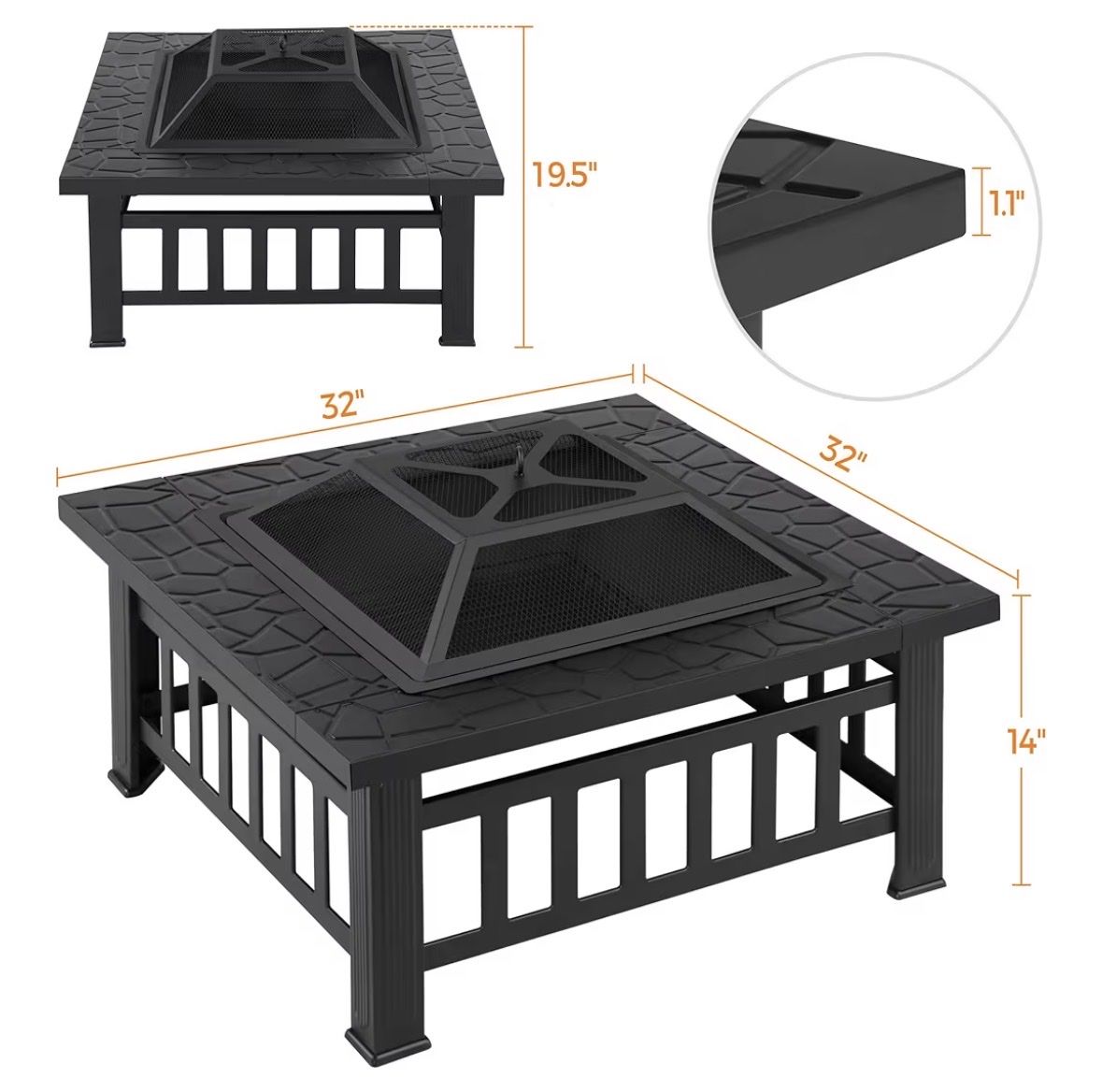VenmoBrand new in box, never been assembled. See pics for details. Yaheetech Multifunctional Fire Pit Table 32in Square Metal Firepit Stove Backyard Patio Garden Fireplace for Camping, Outdoor Heating, Bonfire and Picnic