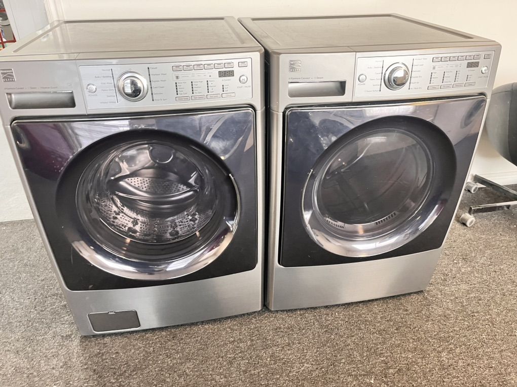 Very nice kenmore by Lg ultra capacity washer and dryer set. Both are in excellent condition and very clean. The dryer is electric and has steam refresh option to remove wrinkles and freshen up your load, they can be stacked or side by side. 45 day warranty included. Only $550 for the set. I can deliver and install for a little extra. Call 8015403075