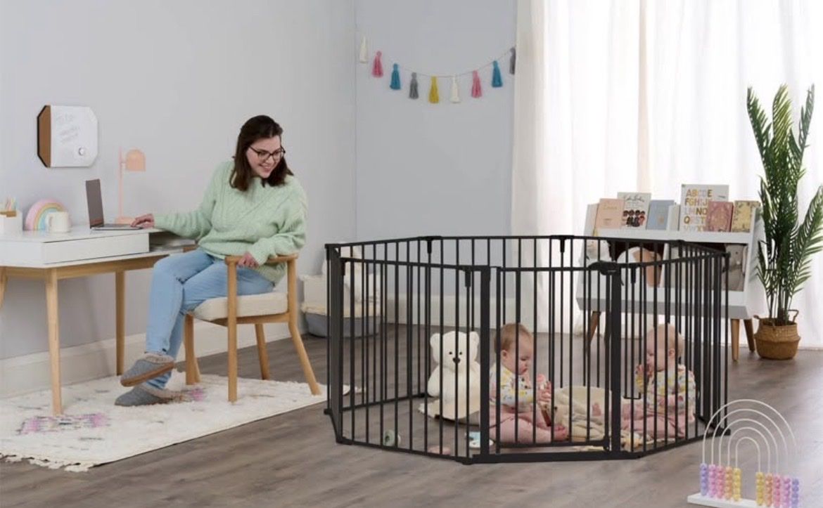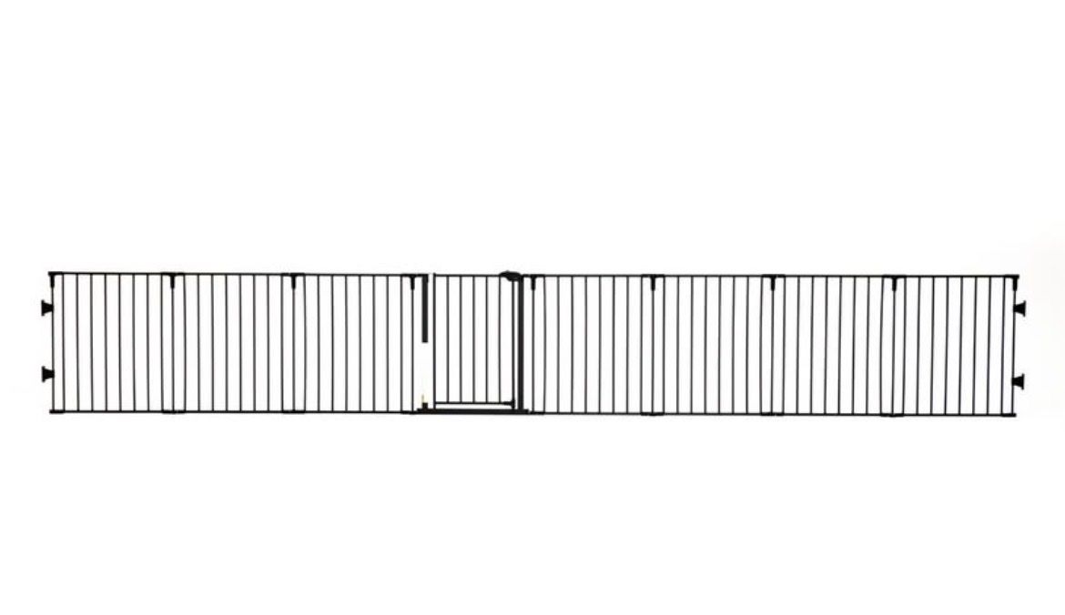 Color: Black SUPERWIDE: Fits opens up to 192 inches wide and stands 28 inches tall 2-IN-1: Can convert from a super-wide gate to an 8-panel play yard, no tools required, quick and easy, Includes 4 pack of wall mounts