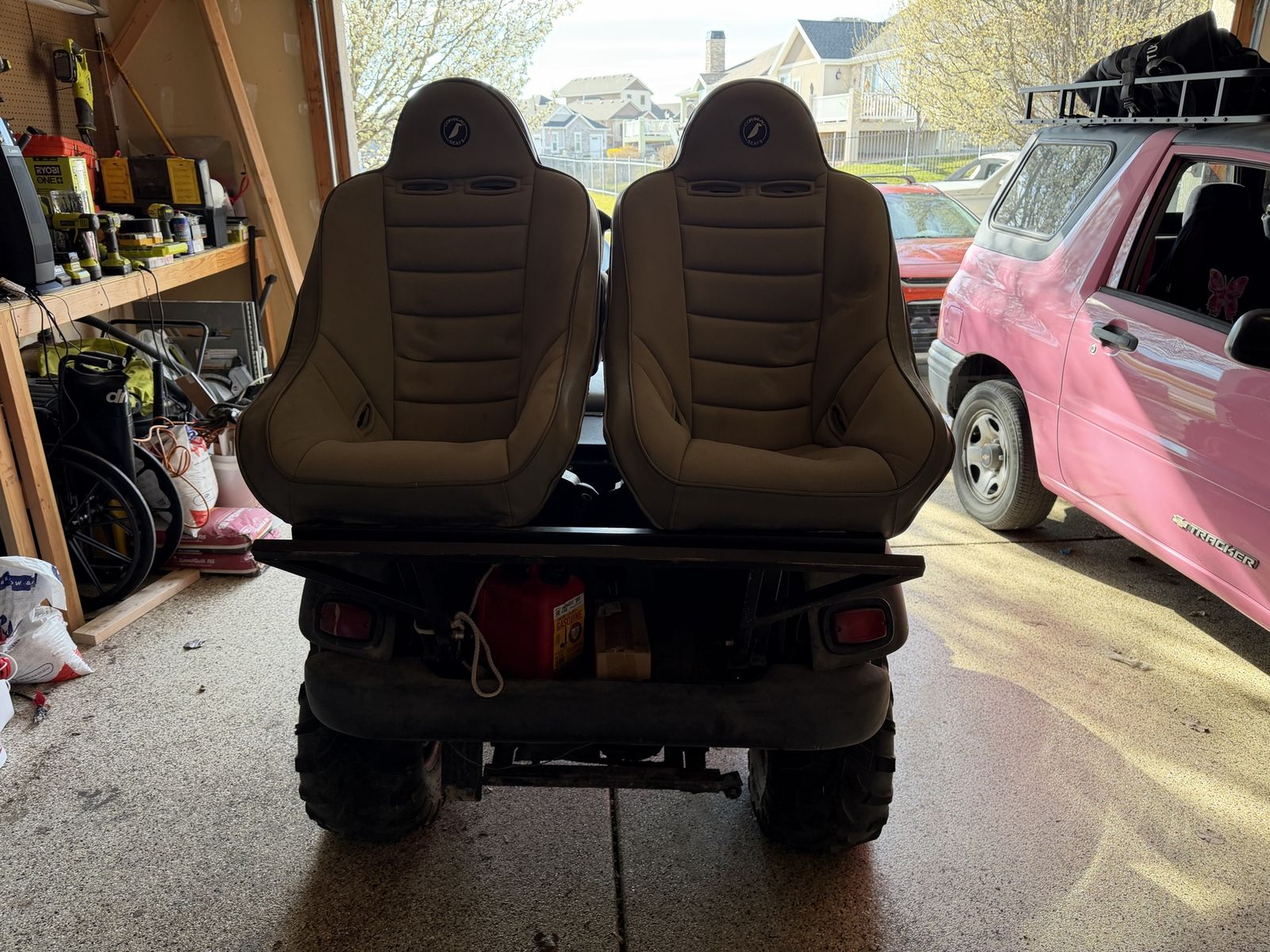 VenmoOne of a kind monster truck golf cart! This is an off-road racing cart. I’ve had it for 4 years but I have to move out of state for medical emergency and need to find a new home for this. I have serviced the rear axle gears, rebuilt the carburetor, replaced the fuel pump, replaced the fuel filter and serviced the K&N air filter. Back seats have seat belts. It’s a gas powered cart with a variable transmission.