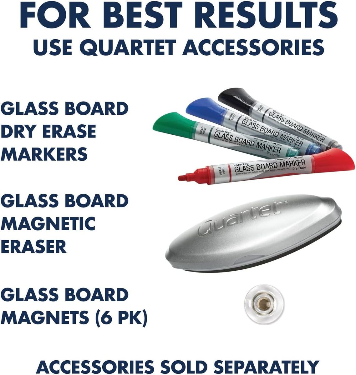 INCLUDED IN BOX – Comes with glass board, removable accessory tray, 1 marker, 2 high-powered glass board magnets, wall template, mounting hardware and easy-to-follow instructions. For best results use Quartet Glass Board Accessories (sold separately)