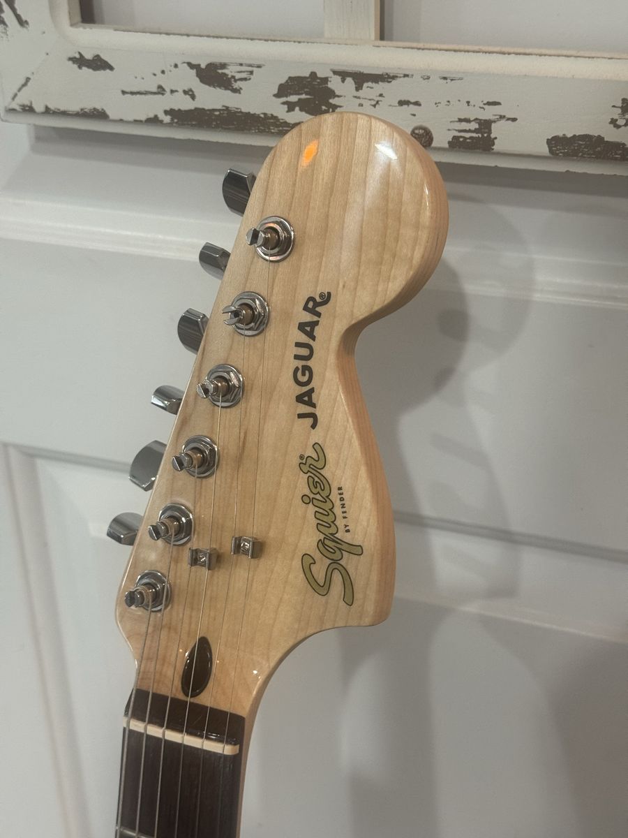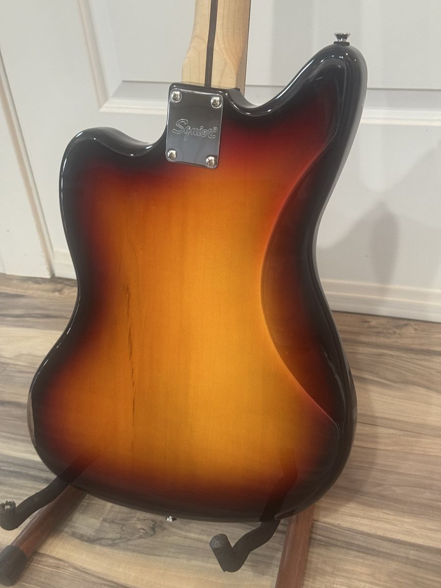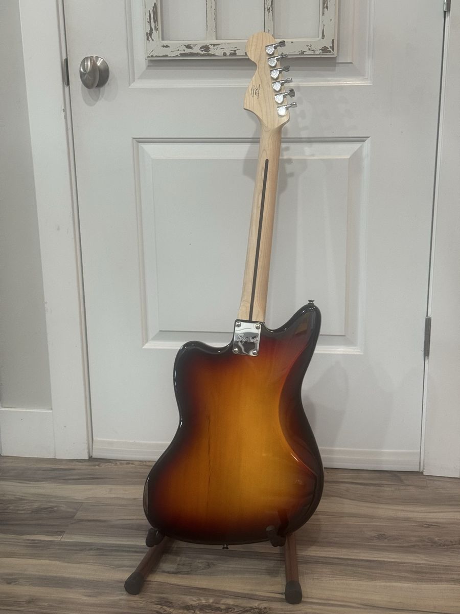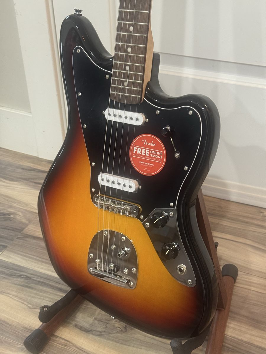 VenmoNew in plastic sunburst Fender Squier Jaguar right hand electric guitar with Fender soft case and stand. Also free Fender online lessons. Cash or Venmo only. Thanks If it’s listed it’s available.