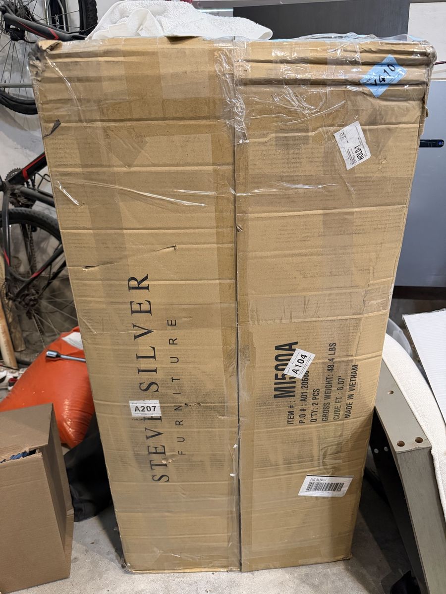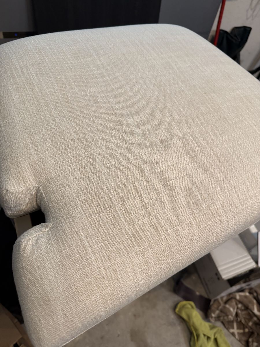NEW Set of 2 Bowery Hill Dining Chairs (Washed Gray/Beige) Selling a brand new, still in the box, never used set of two Bowery Hill upholstered armchairs. We bought these, but they don't quite fit our space. These are super solid chairs with a great "transitional" look that goes with almost anything. The wood has a nice washed gray finish, and the seats are a neutral beige fabric. The Details: • Condition: 10/10 (literally never assembled). • Size: 24" W x 25" D x 36" H. • Features: Hardwood frames and comfy armrests.