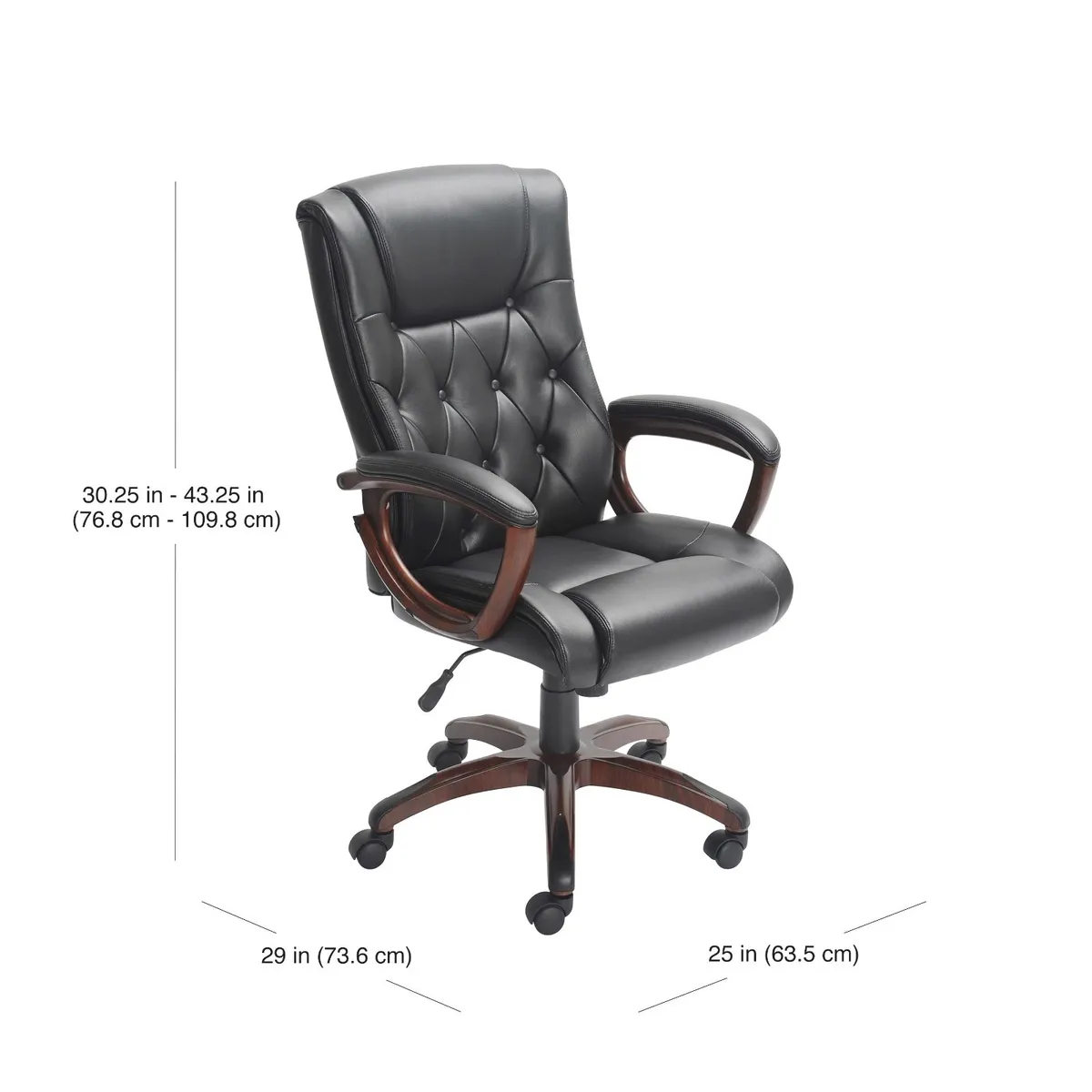 This executive office chair offers the perfect blend of comfort, style, and durability, making it an excellent addition to any office or home workspace. Upholstered with luxurious bonded leather on all seating surfaces, it provides a rich, sophisticated look that pairs seamlessly with a variety of office décors. The hand-sculpted arms are padded for extra comfort, while the back and sides are finished with matching vinyl for a cohesive and polished appearance.