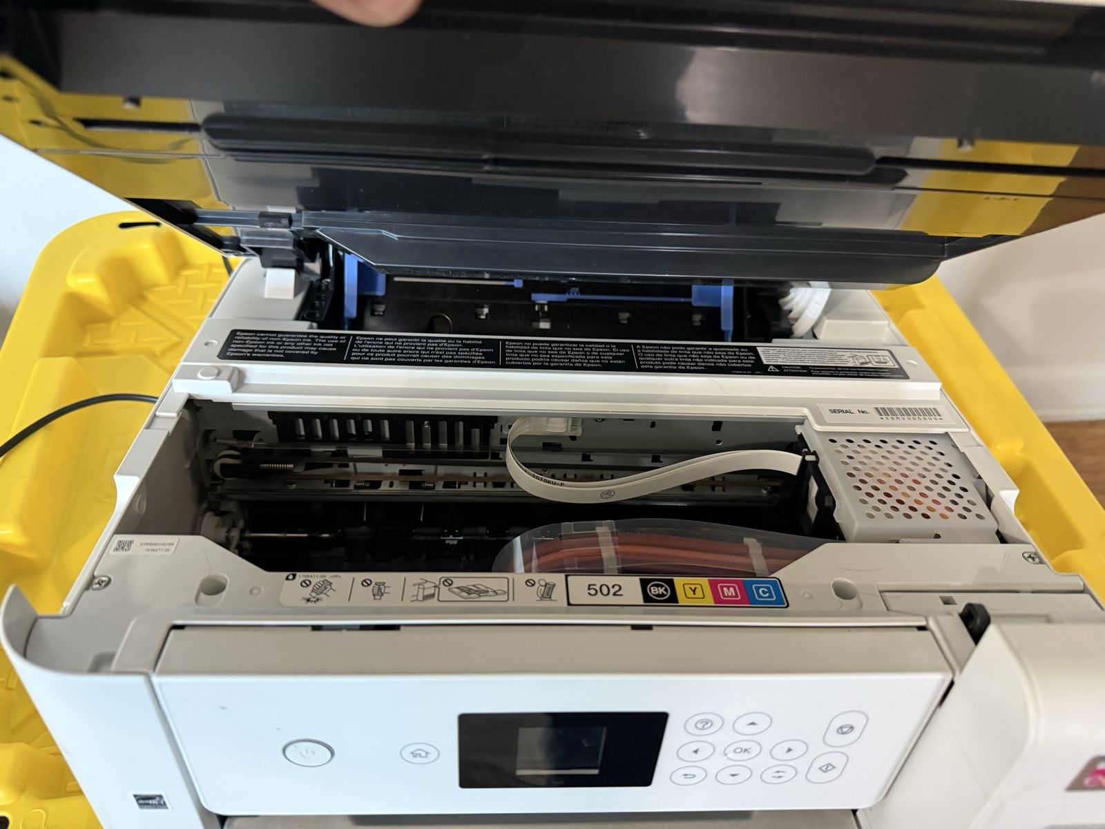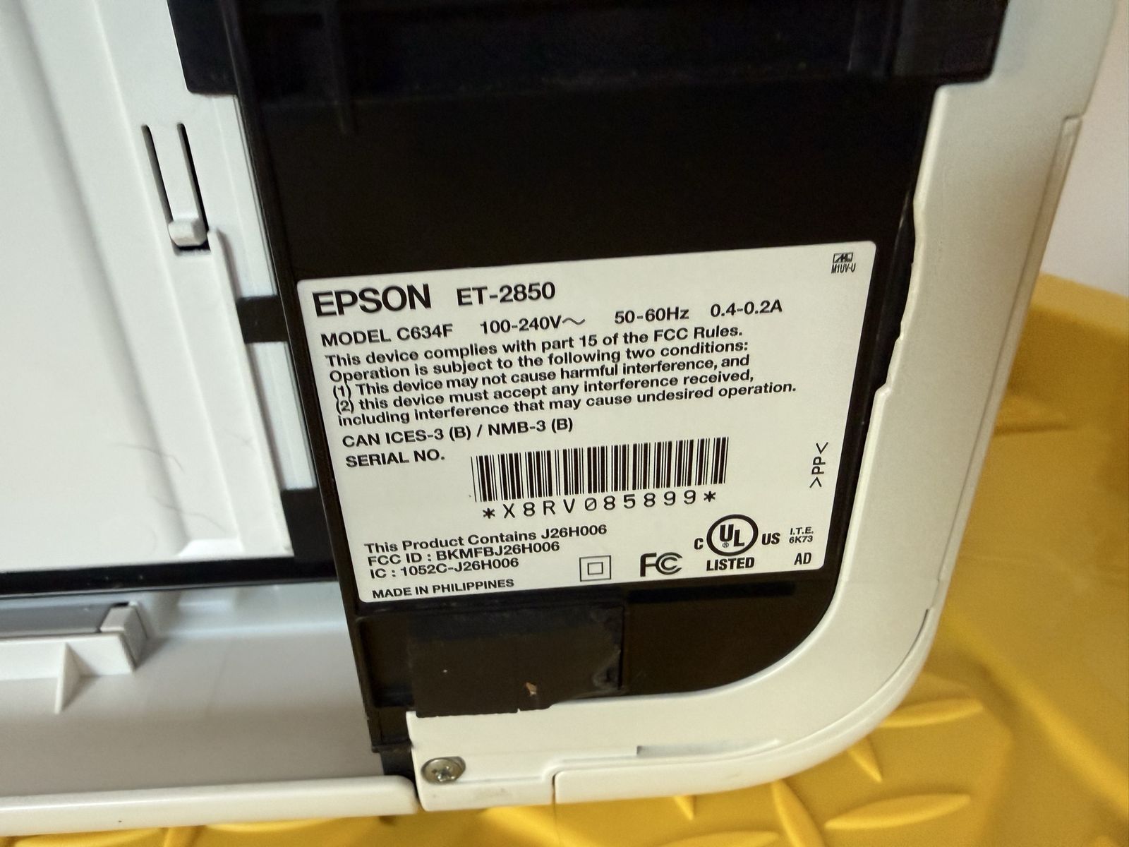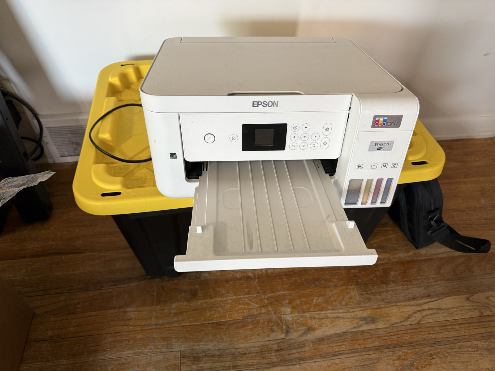 VenmoEfficient Epson EcoTank ET-2850 wireless printer. This all-in-one printer does print, scan, and copy. Has Wi-Fi connectivity. EcoTank system means no more cartridges, just refill ink. Ink tanks have some ink. Great for home or office.