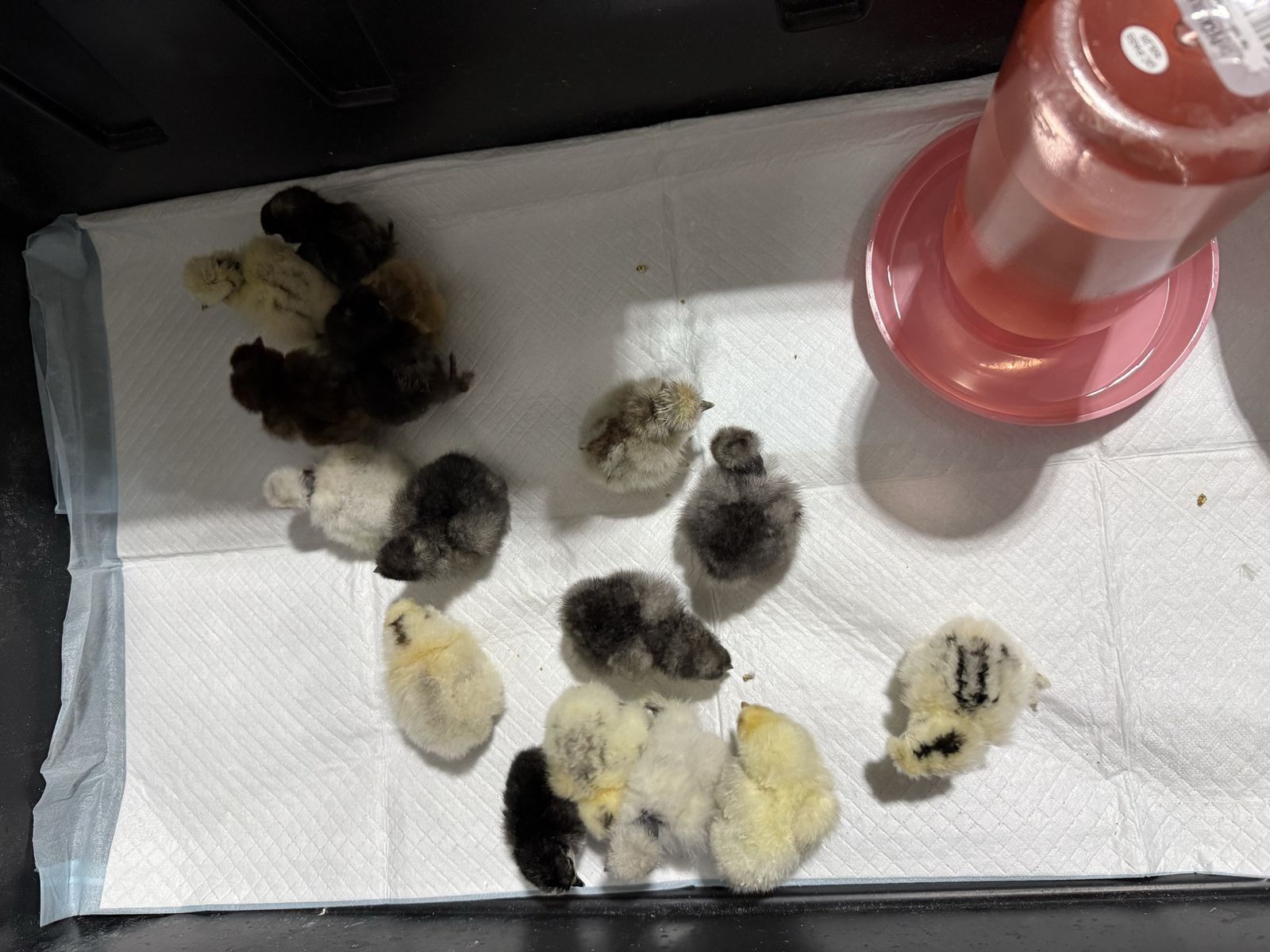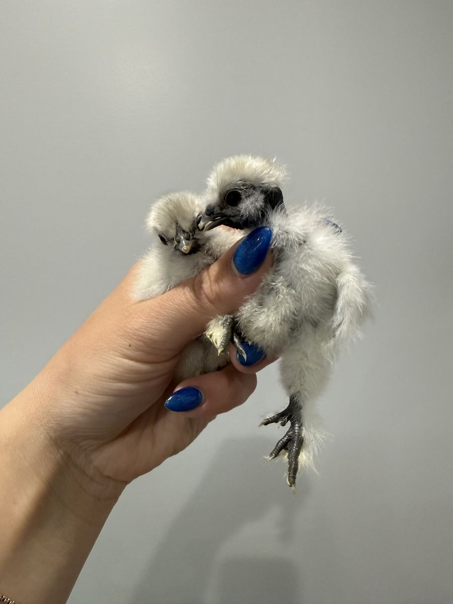 Silkie Chicks ready for new homes! Eating/drinking well. Chance of all feather type! DOES NOT SHOW TILL A WEEK AFTER HATCH.