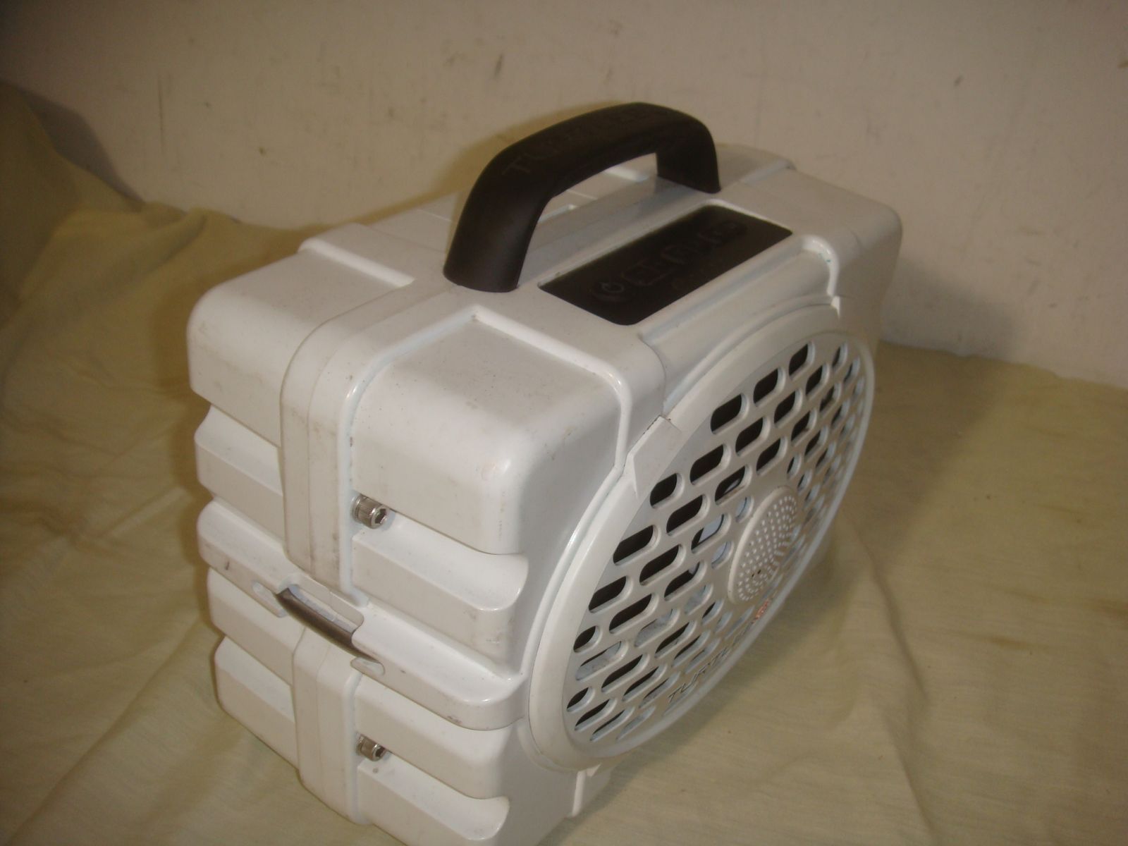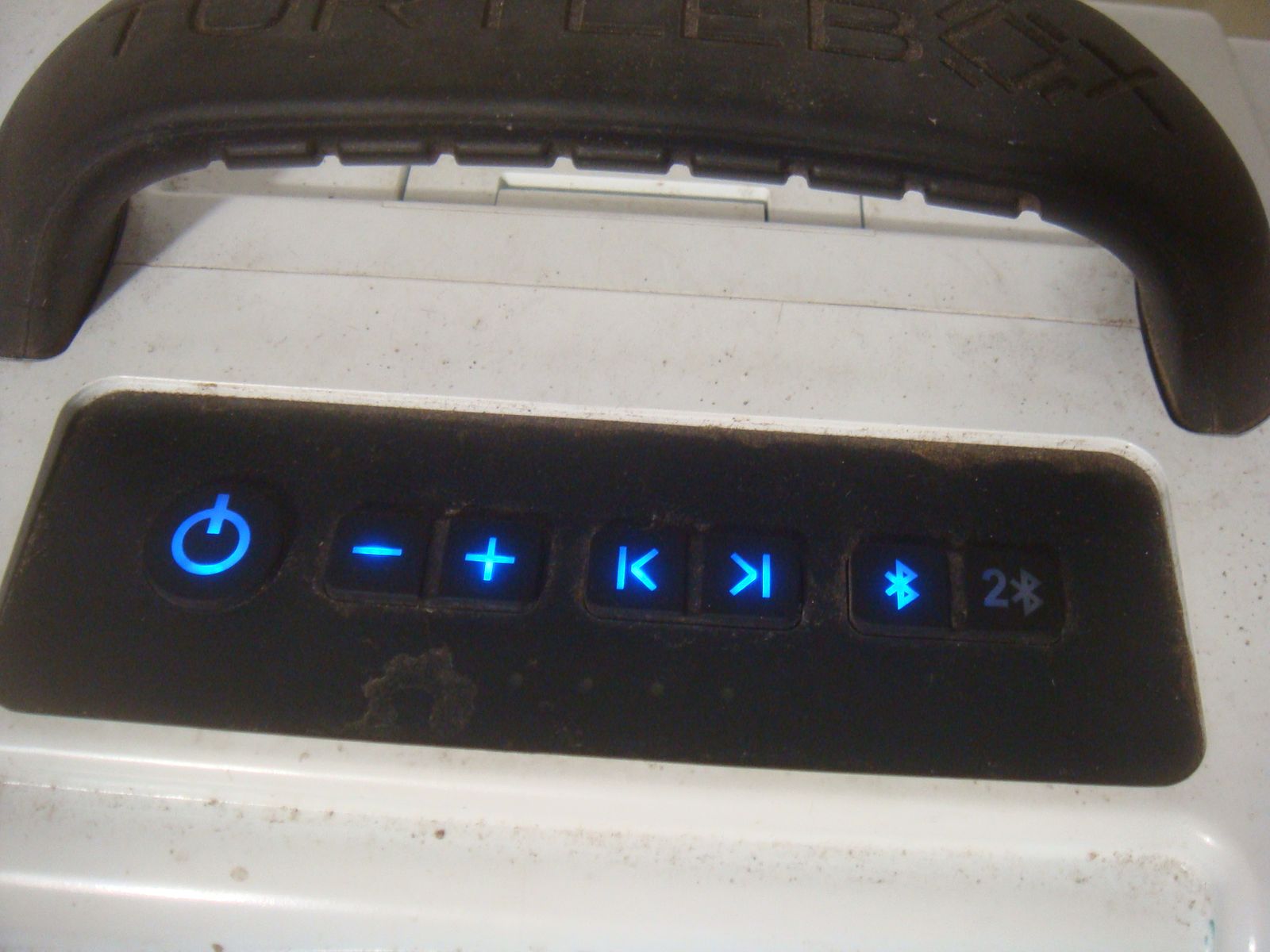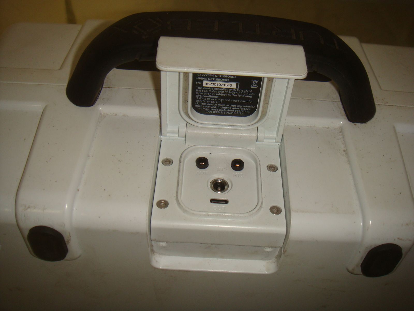 ONE TURTLEBOX GEN 2 RUGGED WATERPROOF WIRELESS BLUETOOTH SPEAKER IN WHITE. This is a used speaker that is a bit dirty with signs of use, but that works perfectly and sounds amazing! It is the speaker only without accessories (you will need to get a 15v 3A power adapter/charger to charge it). It comes with everything shown. This is your chance to save big-time so don't miss out!!