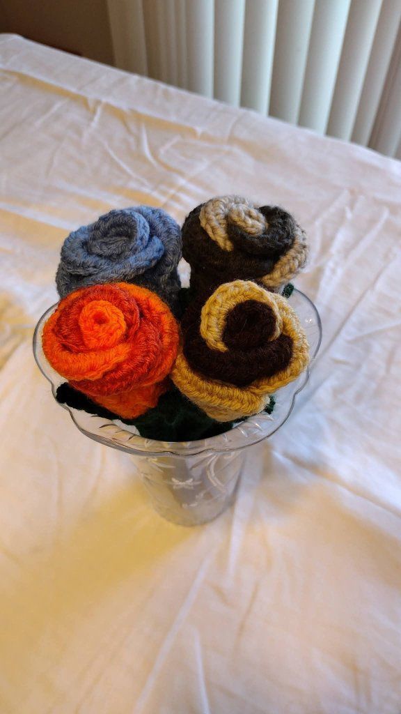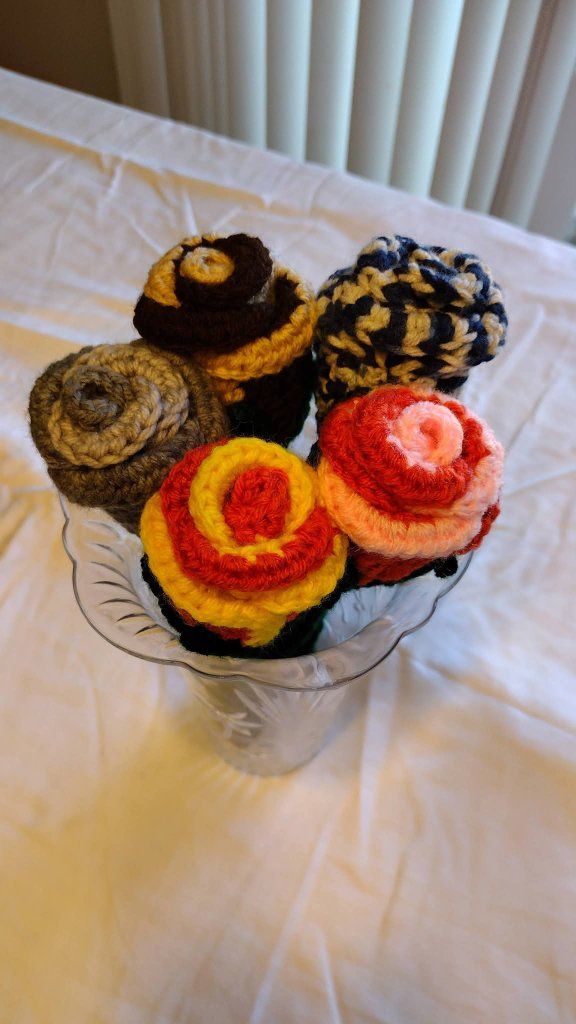 Venmoprison crocheted roses for mother's Day. give Mom a gift as timeless as her love these hand crocheted roses will never wield and will last a lifetime. only $15 each. limited supplies. DM me if interested