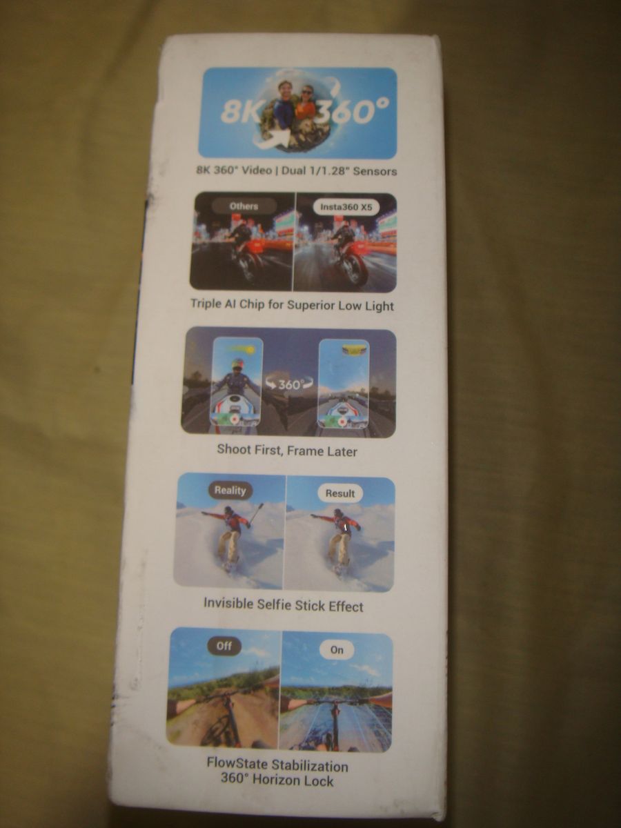 INSTA360 X5 8K 360 DEGREE SPORTS ACTION CAMERA. This is an open box camera that was never used. It is in new, perfect condition and comes in the original box with everything shown. You will need a USB-C cord to charge it. This is your chance to save big-time so don't miss out!!
