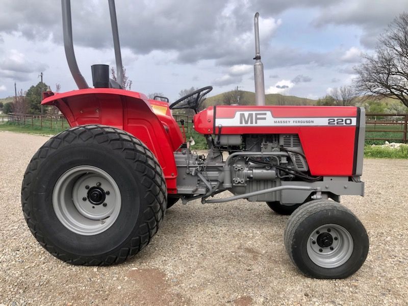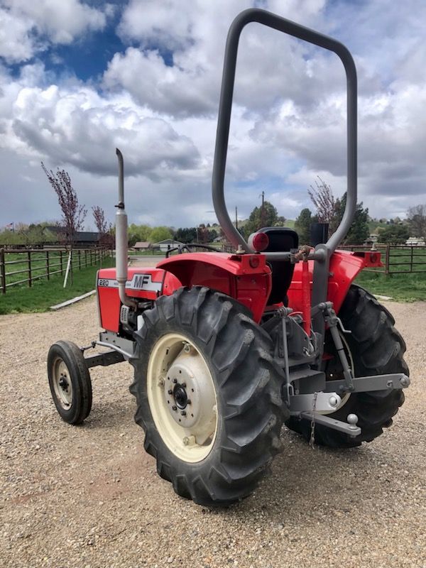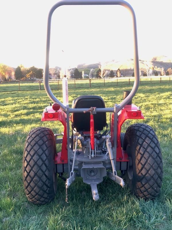 Turf and Tractor tires shown in pictures -I have owned this tractor for more than 10 years - Massey Ferguson 220 Diesel - 3 Point Hitch and Ball hitch or Draw- Comes with Turf Tires which are great when mowing and comes with Tractor tires that makes the tractor set taller - 2 Owner Tractor - only 1383 Hours - Handiest Tractor I have owned. - PM me to see it .