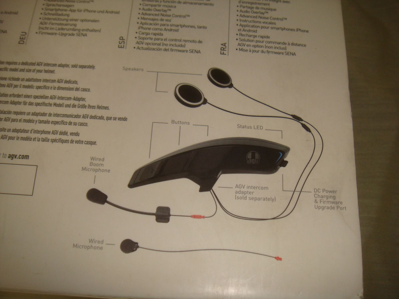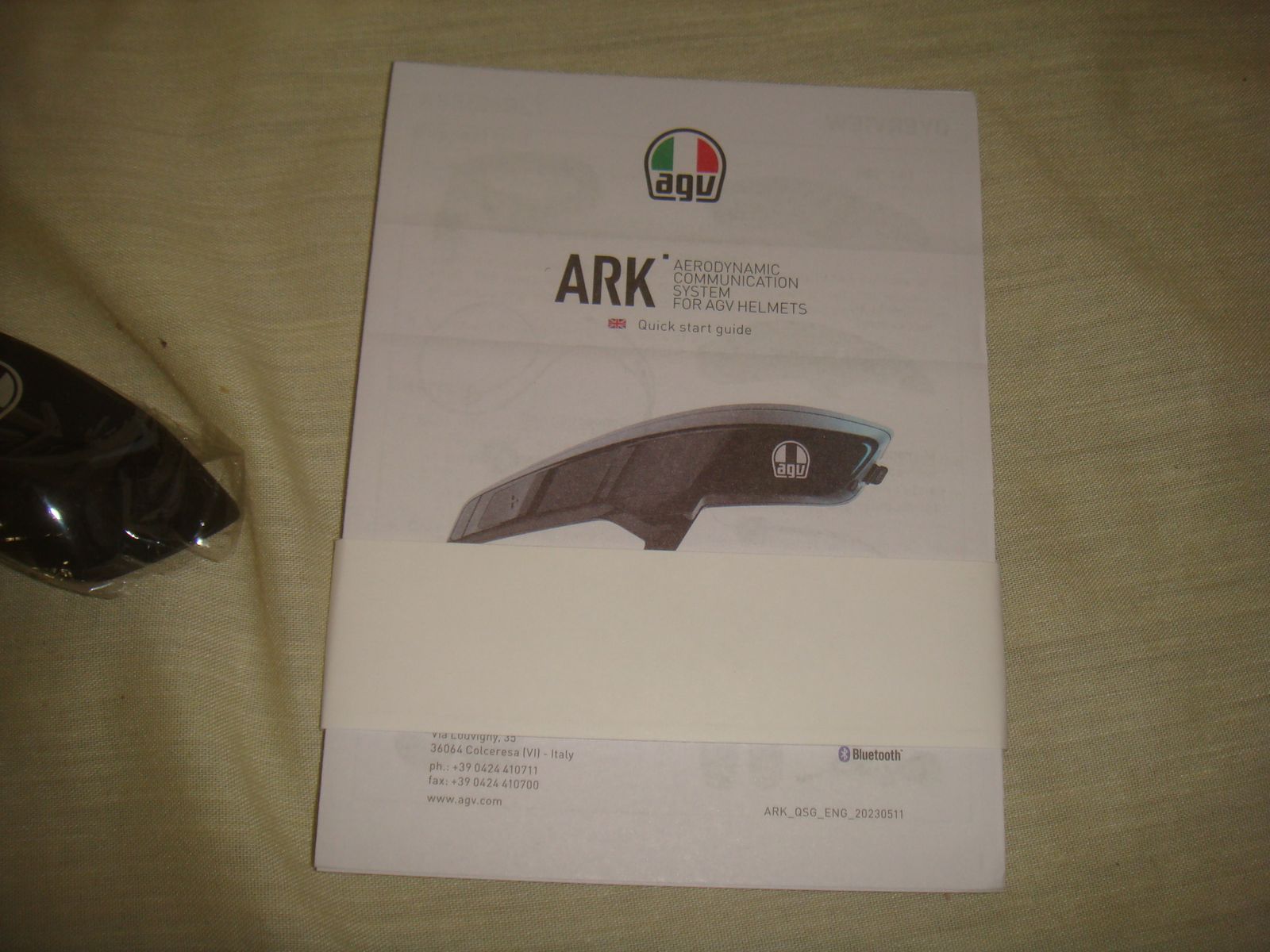 AGV ARK BLUETOOTH INTERCOM COMMUNICATION SYSTEM BY SENA FOR AGV HELMETS K6 K5-S. This is brand new, never used, only opened for the photos. It is the comm kit without helmet adapter or remote. It comes with everything shown. This is your chance to save big-time so don't miss out!!