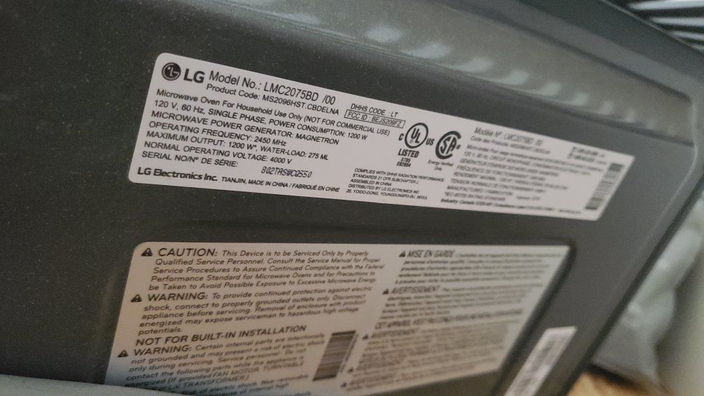Beautiful black and stainless steel LG large microwave. Comes with heating plate. Does not heat. Turns on and runs but does not heat. Door gets stuck sometimes and the power level button does not work. sold as is. If you know how to fix it more power to you. It has been disassembled and assembled again.