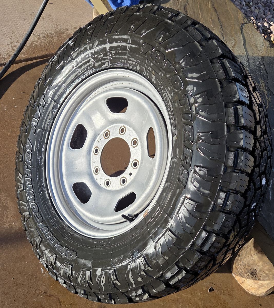 Spare tire is new. It is mounted on a Ford F250, F350, Super Duty, 8x170 rim you can have for an extra $50 or I will take the tire off the rim if not wanted.