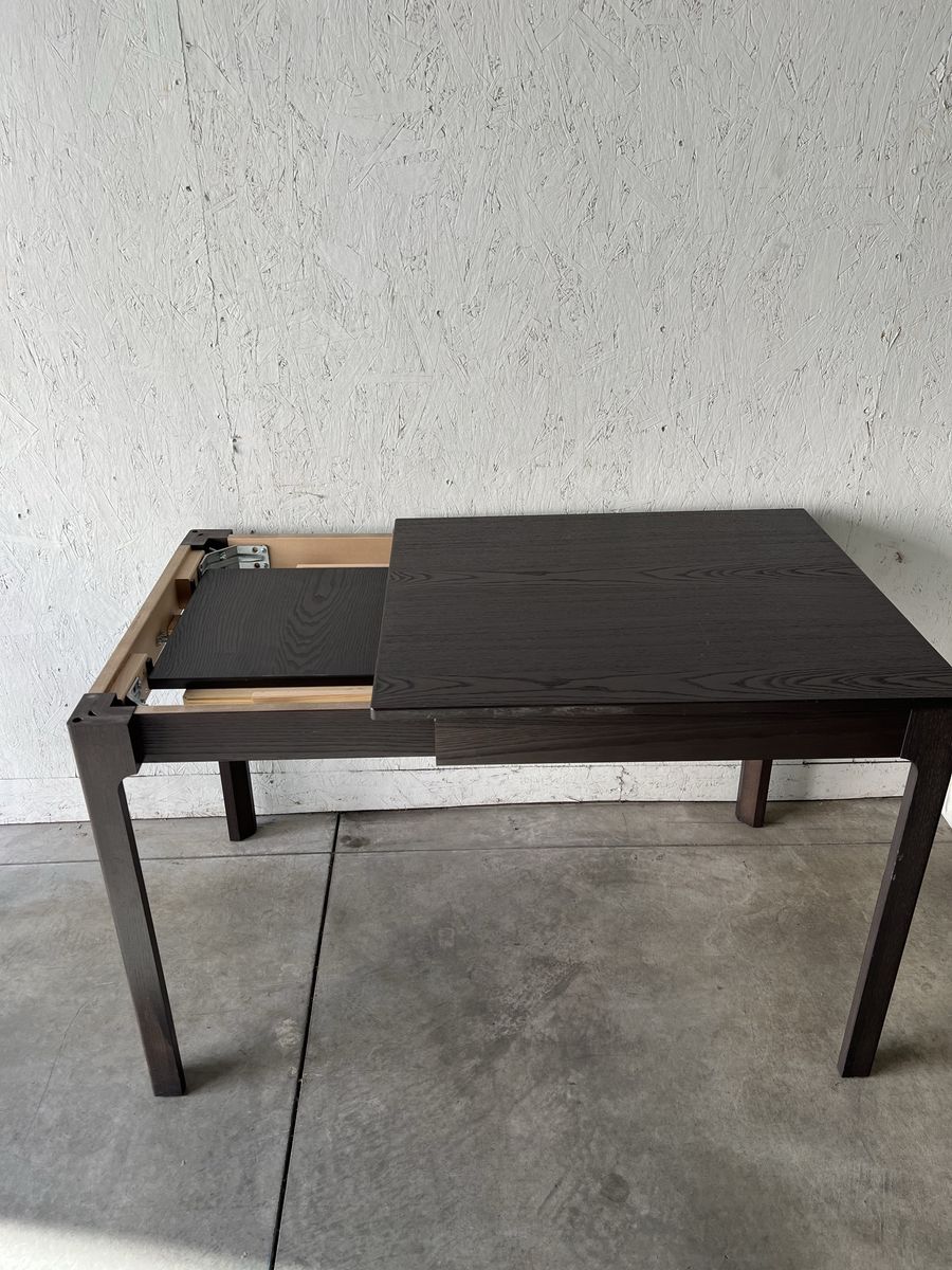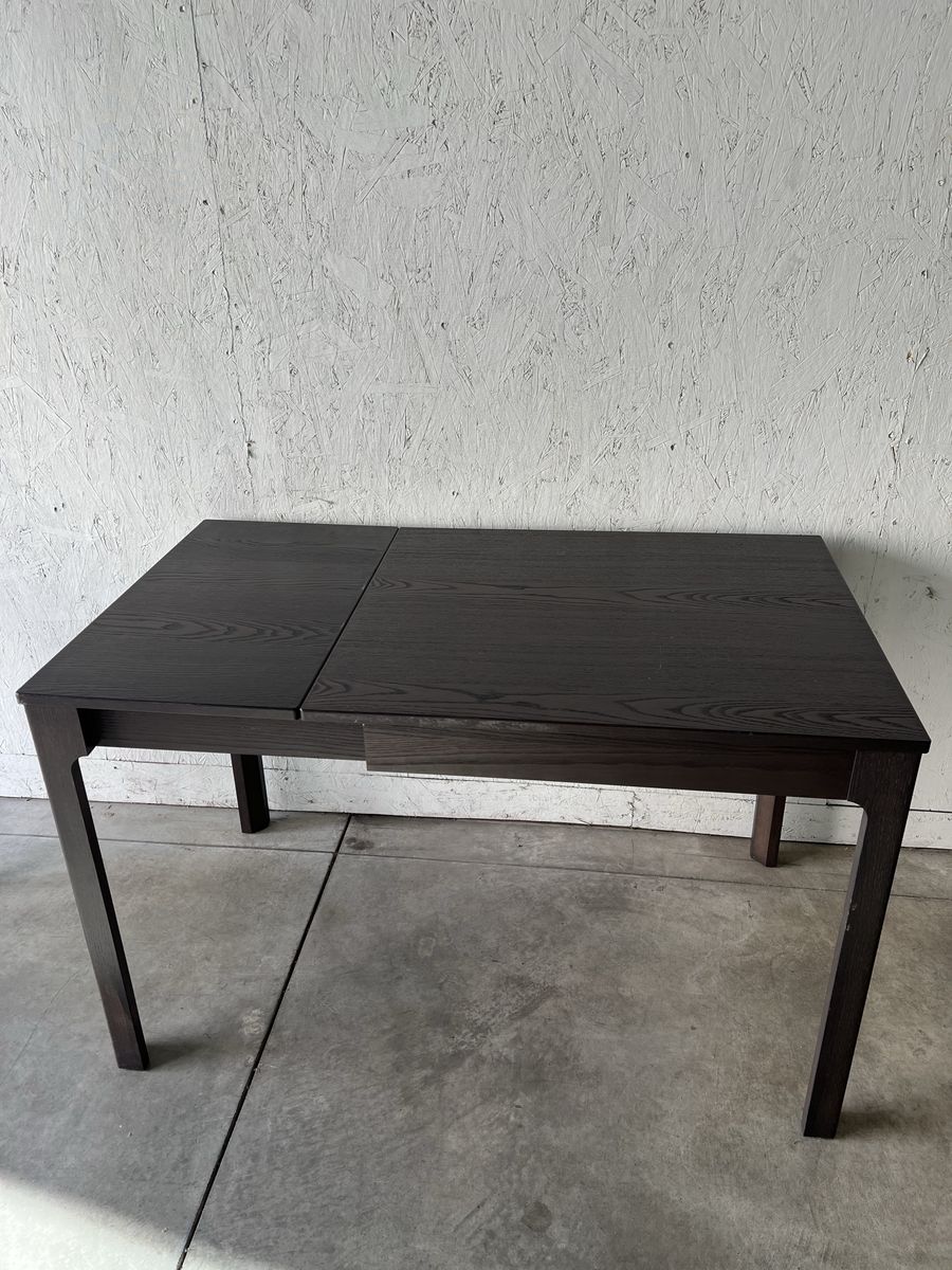 VenmoThis dark brown table is designed to fit anywhere. It's in great condition and also extends up to 6 people comfortably. It comes with 3 good condition chairs (if you would like to have them as well).