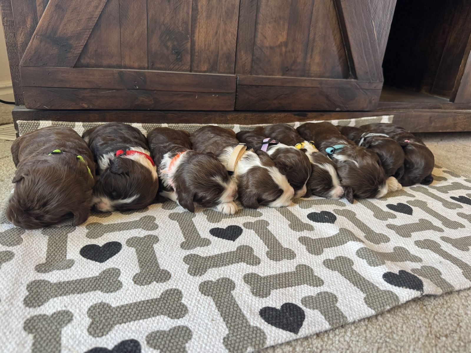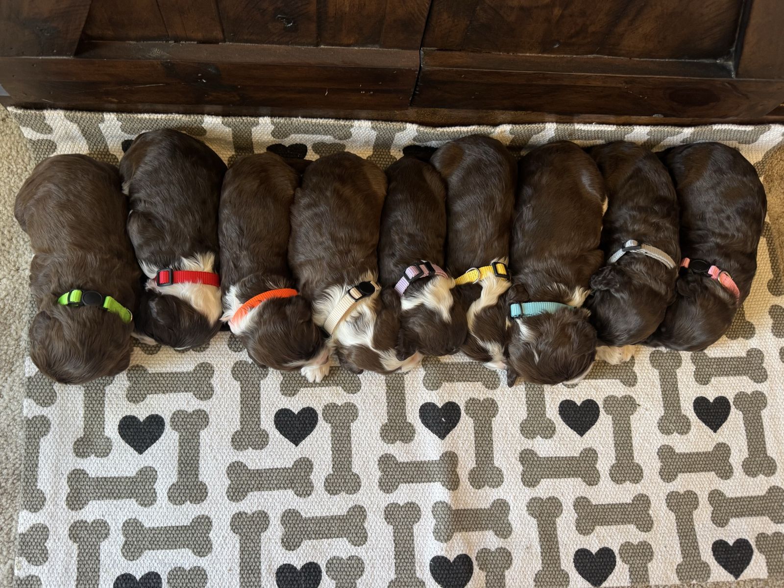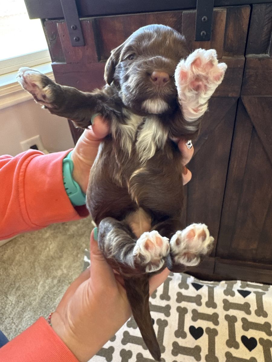 Beautiful brown and white PWD females!These pups will be awesome companions for active families that love to explore the outdoors and be adventurous. Portuguese Water dogs are amazing companions and really become your best friend. They will be ready to go home with you the end on May!