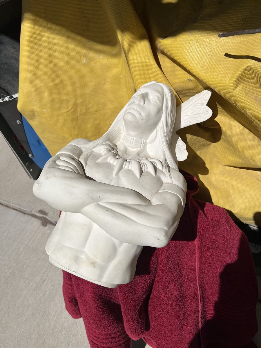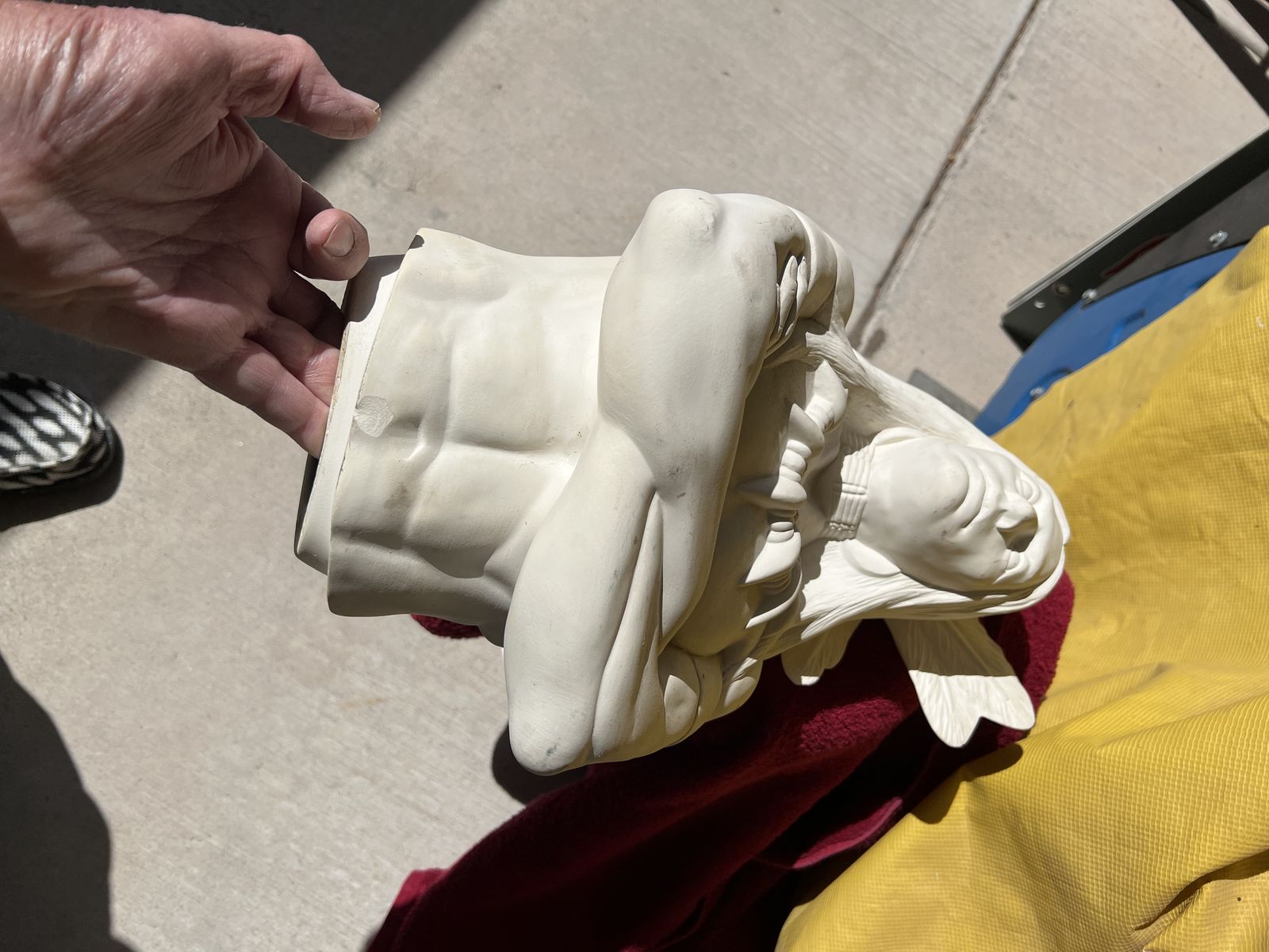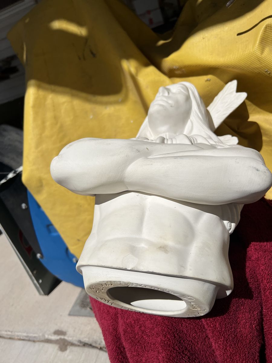 PayPalStatuary Corp., Chicag, Illinoi. 17" high c 10.5" wide at its widest point, 8" deep. Weight is 5 lbs. Excellent overall condition.