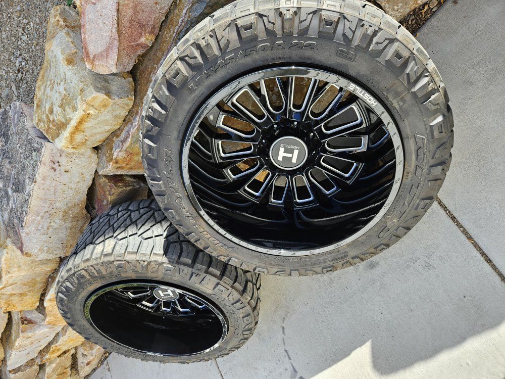 These wheels and tires would look great on your truck. Made for full sized Chev or GMC, 8 lug, check photos for full description ..