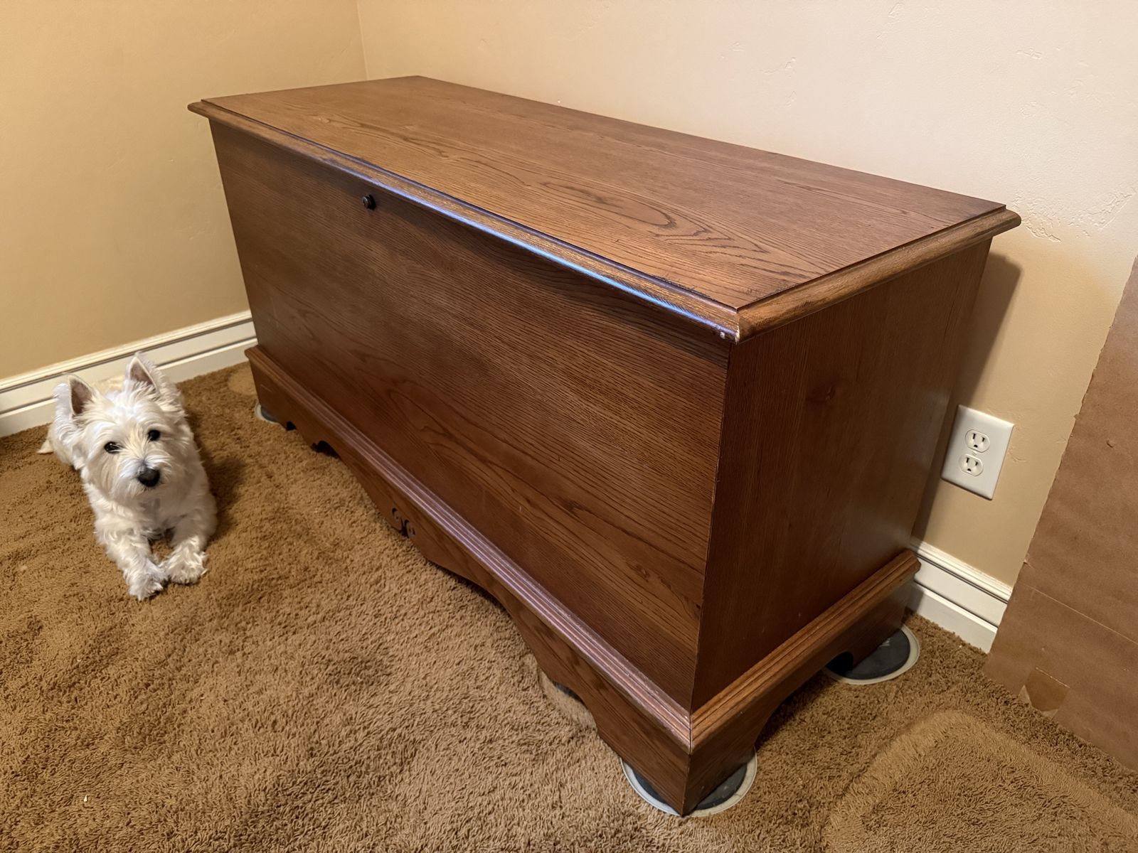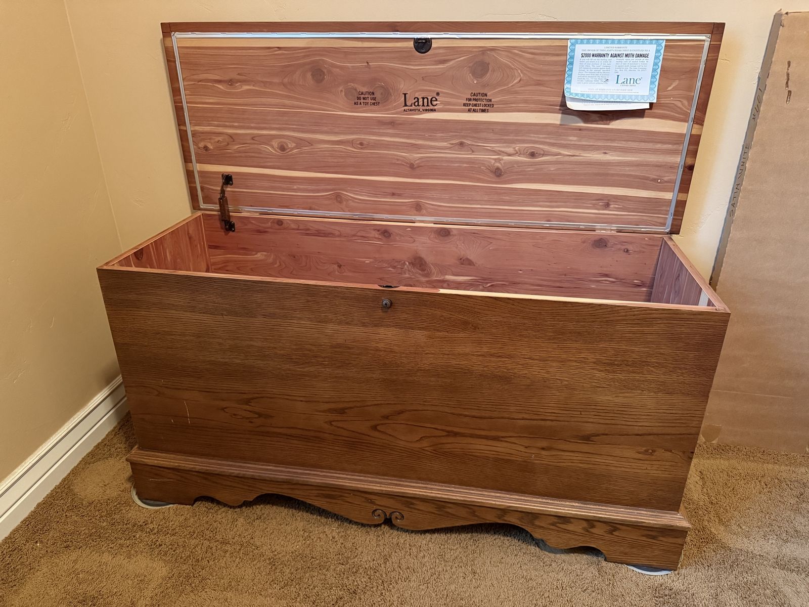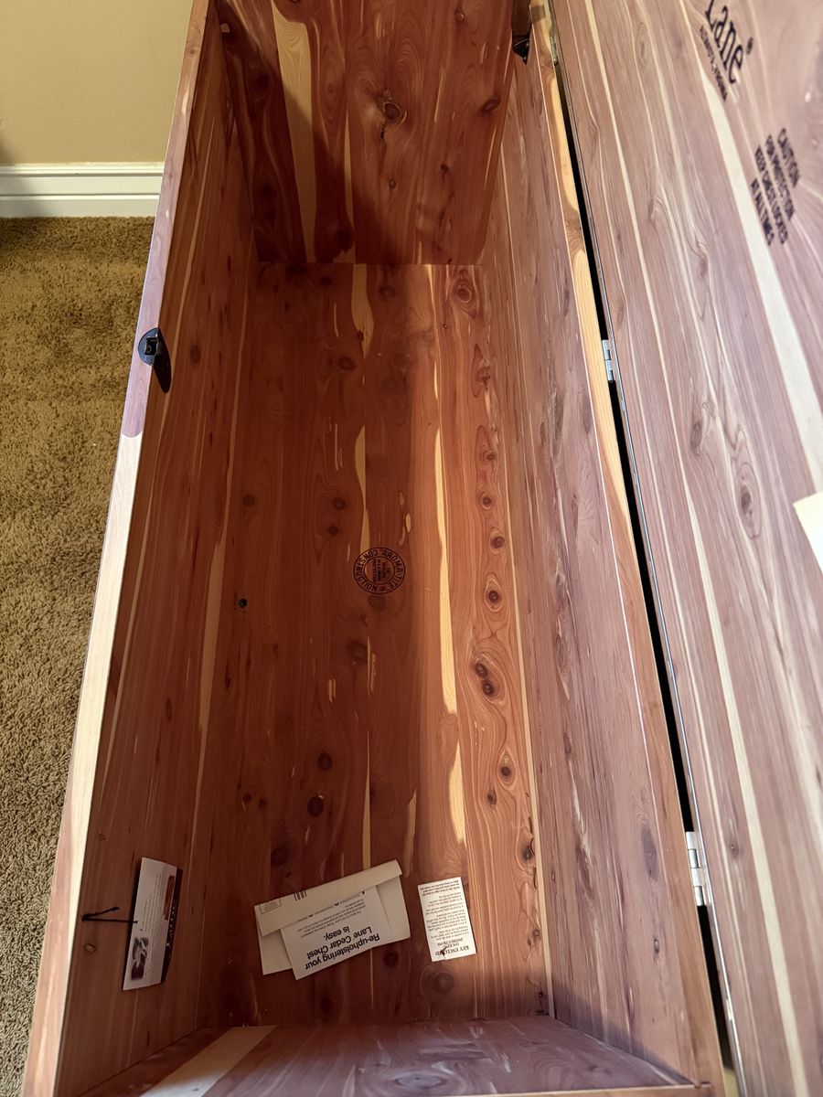 VenmoLane cedar chest, made in 1996. Locks and comes with the key. It has a few scuffs and dings, but overall good condition.