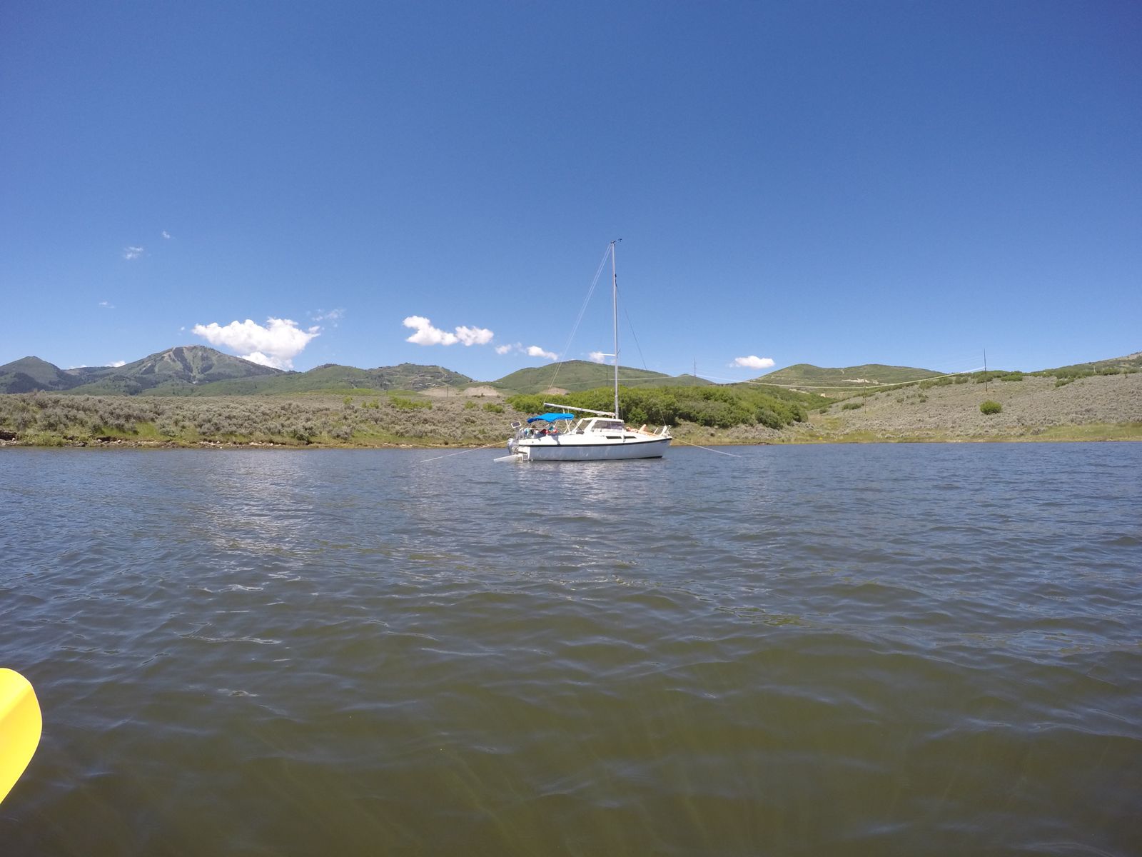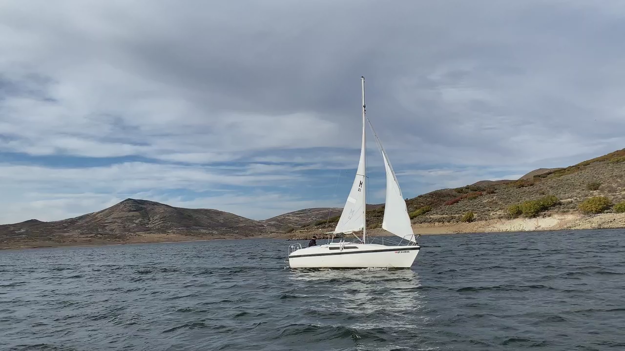 The motor can push the boat at a little over 7 mph and gets great gas milage, giving you the option to motor sail if you want? Large 3.5 gallon fuel tank gives you lots of run time if needed. Call with questions, 801-631-4117