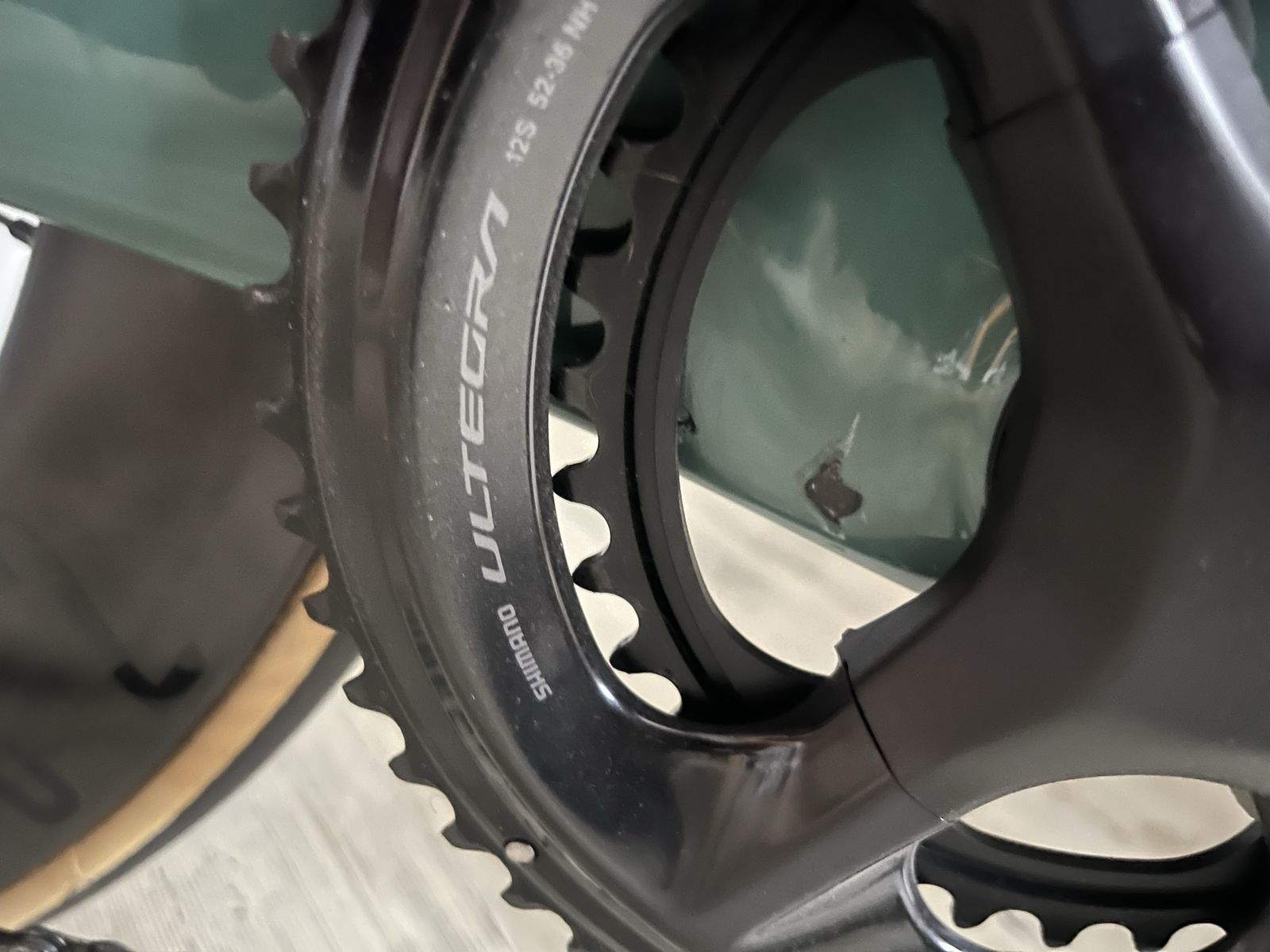 Riden about 50 miles. Paint chip/scratch near bottom bracket from a chain drop on the first test ride. Everything in good working order.