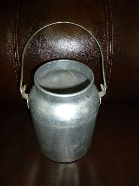 VenmoThis is a really unusual and fun find. It is a metalware pail with a handle and shaped like an old milk can. My wife loved the size of it. It is 7 1/2 inches tall x 5 wide at the bottom. The opening at the top is 3 1/2 inches. It was made by Ware Ever in the USA. This has been used as a utensil holder and displayed on a counter. I have never seen another one like it. And I have not been able to find one similar to it anywhere. Items in bucket/can not included. Price is firm.