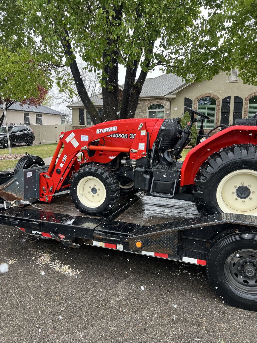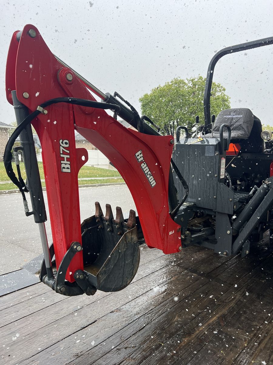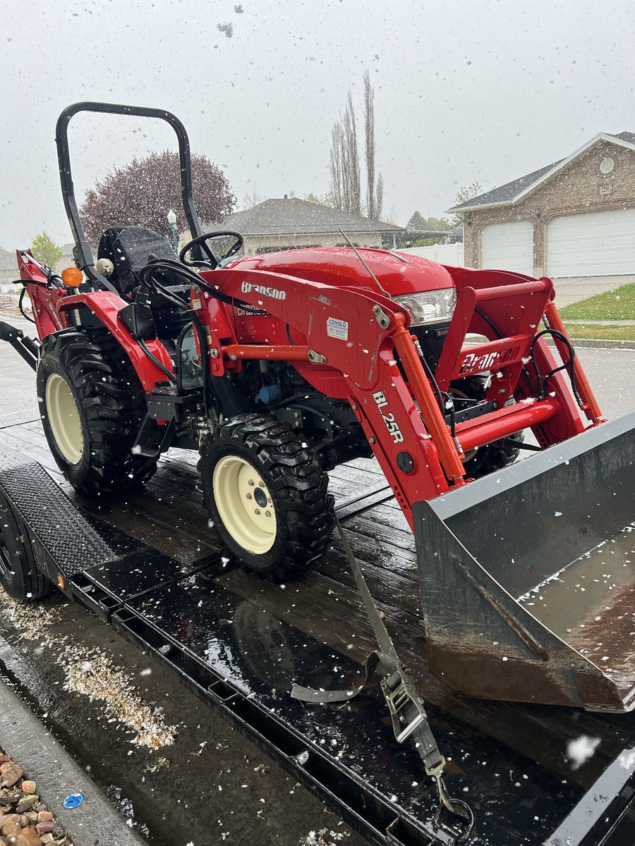 2019 35 hp Branson backhoe and loader. Runs perfectly, looks great. Backhoe comes off so you can use the included 3 point arms and PTO with numerous implements such as tillers, mowers, blades, rakes etc. the 35 hp is a very strong engine on a good sized tractor frame, not one of the tiny ones. It will lift 2100 lbs to full height. $23,500