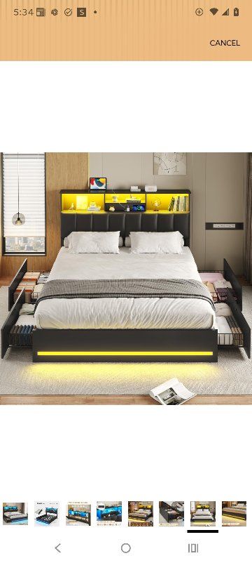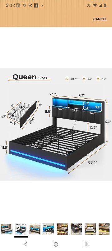 Venmocomfort and practicality in mind, this queen bed frame features a bookcase headboard with 4 open storage spaces and 3-tier shelves, ideal for keeping bedroom essentials within easy reach. Maximize your space with hidden storage compartment behind the leather backrest, it flips open and store privacy items to make your bedroom well organized. LED Lighted Headboard&Footboard--Our queen bed frame with led lights on both headboard and footboard boasts enchanting atmosphere for your bedroom no matter it’s day or night. With beautiful multi-colour RGB LED Light, phone App and remote control modes, you can freely set the color, brightness, music mode and timing function, and design your light show according to needs and scenes. Built-in Charging Station--This queen bed frame with charging station includes 1 Type-C port, 1 USB port and 2 standard outlets, which is very convenient for you to charge your mobile phone, tablets, headphones or other electronic devices, making your life more comfortable and convenient. 4 Large Storage Drawers--Ultimate storage space with our queen bed frame with storage featuring 4 spacious drawers. Equipped with smooth wheels for easy access, these drawers offer ample room for bedding, clothes, and more, keeping your bedroom organized and clutter-free. Sturdy Structure--Crafted with a low profile design, MDF board, solid metal frame, and sturdy metal slats, this queen bed frame made of FSC-Certified wood provides exceptional support for your mattress, ensuring even weight distribution and long-lasting durability. With a weight capacity of up to 1000 lbs, say goodbye to sagging and hello to a sturdy bed frame with no box spring needed. Easy Assembly--The queen bed frame with drawers in a box that includes instructions and necessary tools. The clear and detailed instructions ensure that you can set it up quickly and hassle-free, saving you time and effort