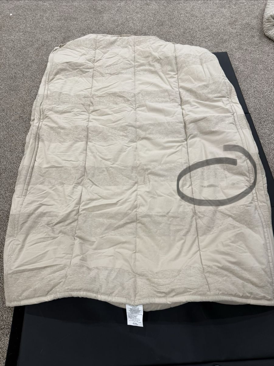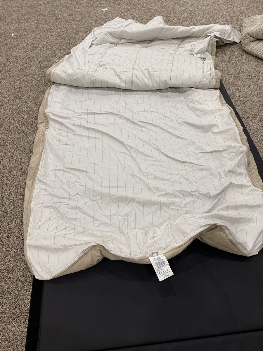 Beddys THREE QUARTER ROUNDED LEFT CORNER Halston cotton Zipbase. Has 2 shams and 2 cases and 2 sheets. Stain on top circled. MAR 77