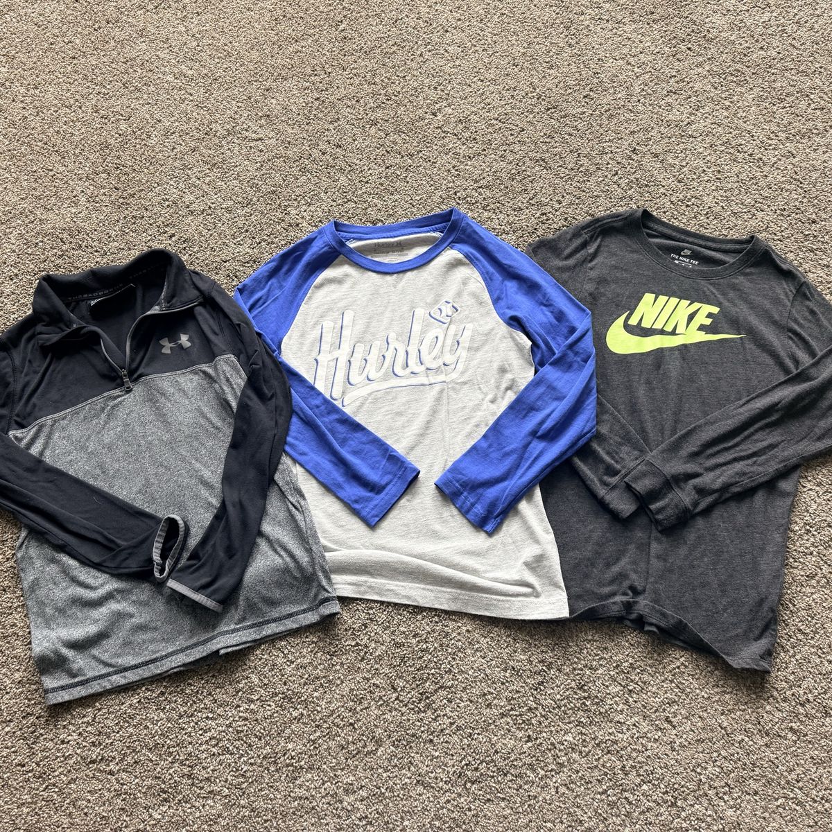 Size M or 10-12 Under Armor, Nike, Epic Threads, Hurley, Spyder, Salty Crew T shirts, Hoodies, shorts, pants, dress shirts and dress pants In great condition 45+ items 2 pairs of jeans have holes in the knee Some free, pet free Pick up in Kaysville