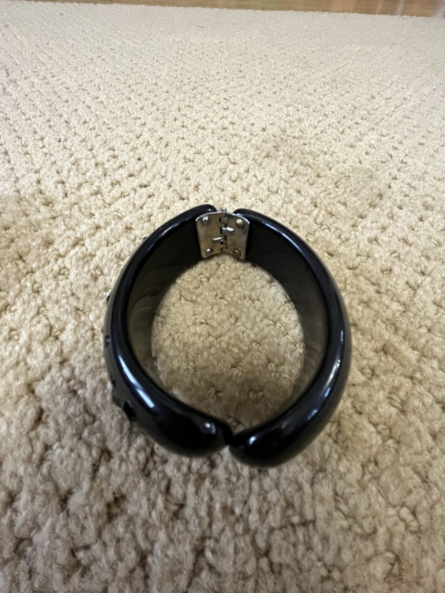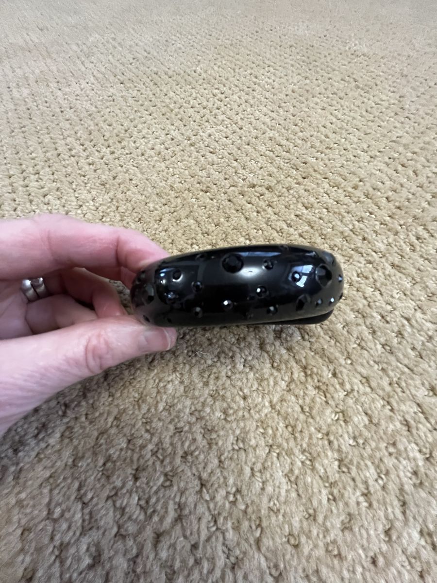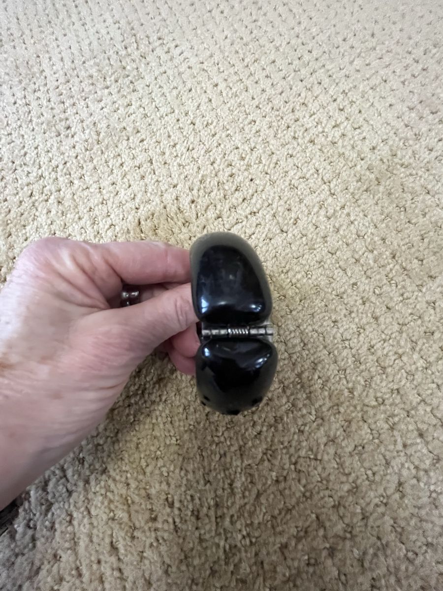 VenmoThis is a gorgeous black bangle/bracelet with 27 different size black crystal rhinestones. It has a springed hinge for easy snap on and snap off. This is from the 1940's-1950's. It is in very good condition. It is a very one of a kind piece that can be worn with anything. Selling for a parent. Price is firm.