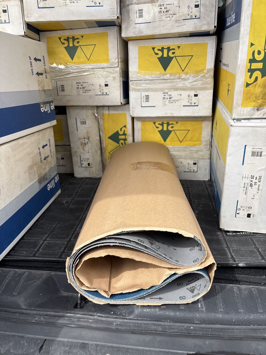 VenmoSanding belts for belt sander industrial woodworking. 25” x 48”. 4 boxes of 60 grit, 4 boxes of 100 grit, 4 boxes of 120 grit. $20 per box or make offer on all