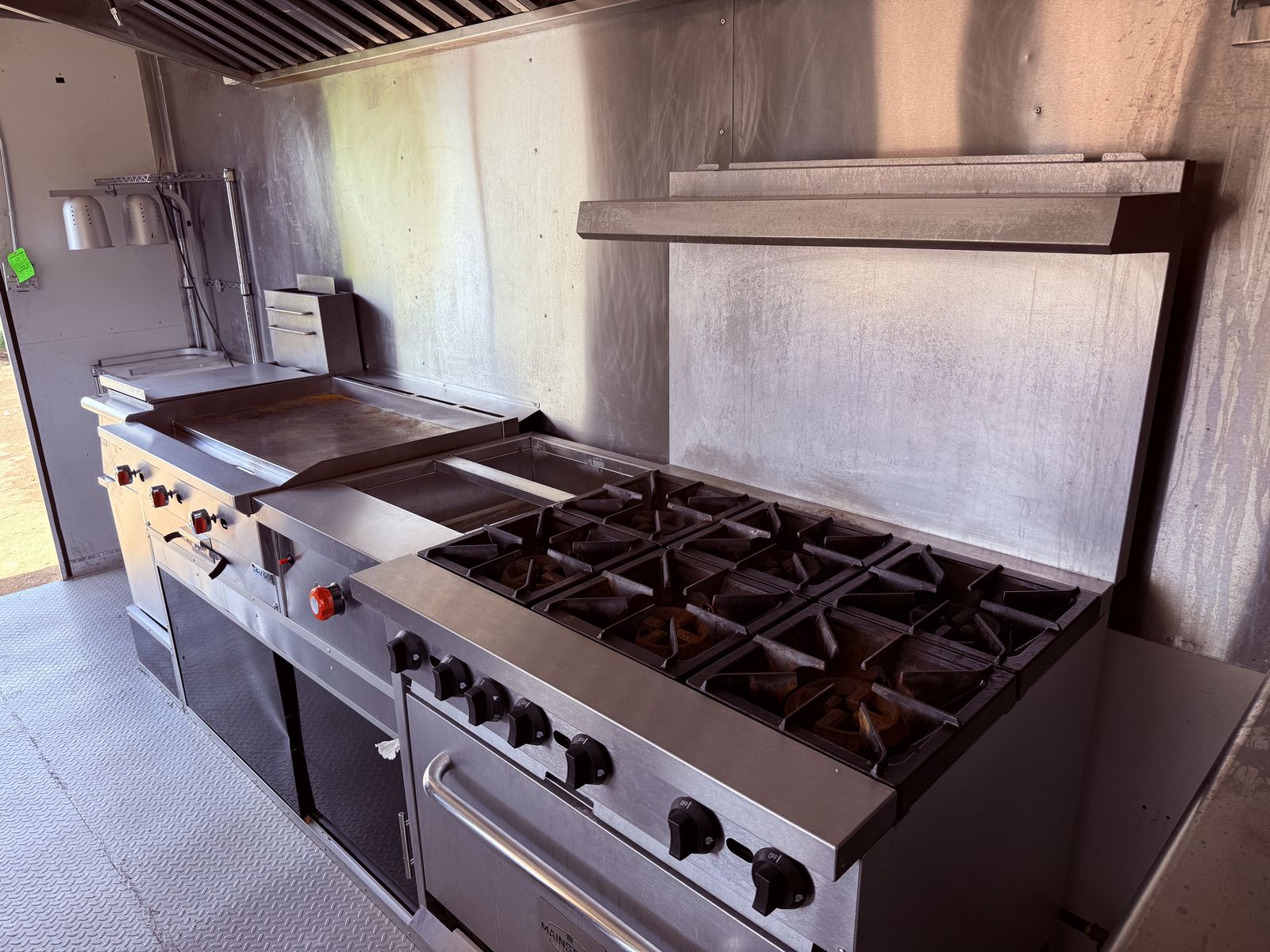 Flat top griddle + multi-burner range/oven combo – versatile cooking setup
